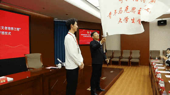 校党委委员、副校长高喜天作了动员讲话,并对学员提出了几点希望:一是广大团员青年要坚定理想信念,重点在"自觉",要不断学习马克思主义和习近平新时代中国特色社会主义思想。二是广大团员青年要刻苦学习,聚焦使命担当,在学习中要勤于思考,努力创新,以理论促实践,以实践加课程理论学习。三是广大团员青年要甘于奉献社会,思想上志存高远,学习上勇攀高峰。以铸牢中华民族共同体意识为主线,自觉树立马克思主义国家观、民族观、历史观、文化观,自觉维护民族团结光荣传统。最后,他叮嘱各位学员珍惜宝贵学习机会,牢记习近平总书记对广大青年的谆谆教诲,在实践中锤炼自己的意志品质,提高自己的能力和水平,为推动学校高质量发展奉献青春力量。随后,高校长为本期青马班授旗。