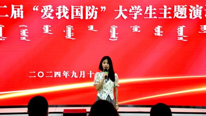为深入学习贯彻党的二十大和二十届二中、三中全会精神,普及国防知识、培育国防观念,以铸牢中华民族共同体意识为工作主线,着力提升青年学生的国防意识和国防素养,积极营造关心支持国防和军队建设的浓厚氛围,9月13日,米乐官网在北图书馆一楼报告厅举办了第二届“爱我国防”大学生演讲大赛(决赛)。本次大赛评委由教务处副处长额日德木图、学生工作部副部长李延茂、团委副书记胡斯勒、传媒学院党总支副书记王丽、蒙古学学院副处级组织员阿力坦斯那嘎担任。师生代表180余人参加了此次活动。