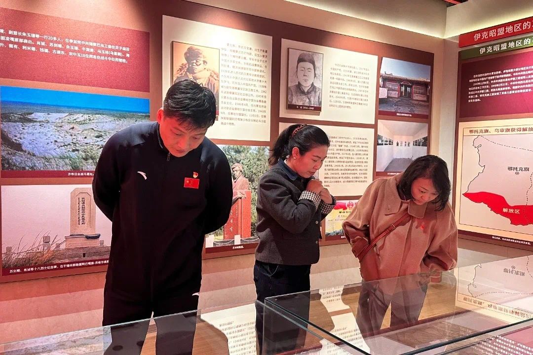 活动伊始,全体师生整齐列队,面向革命烈士纪念碑低头默哀,深切缅怀为民族独立和人民解放事业英勇献身的革命先烈。随后,学生代表向革命烈士敬献花篮,全体师生依次向革命烈士纪念碑敬献鲜花。在庄严肃穆的革命烈士纪念碑前,全体党员面向党旗重温入党誓词,以铮铮誓言表达不忘初心、牢记使命的坚定信念。仪式结束后,师生们参观了内蒙古革命烈士陵园陈列厅,通过观看历史照片资料、文物展品和影像资料,深入了解内蒙古地区革命先烈的英勇事迹。