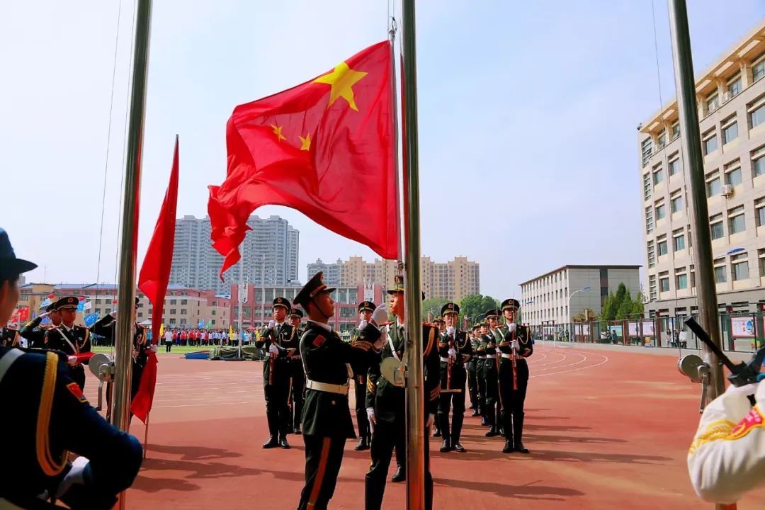 国旗护卫队迈着铿锵有力的步伐