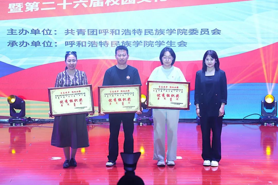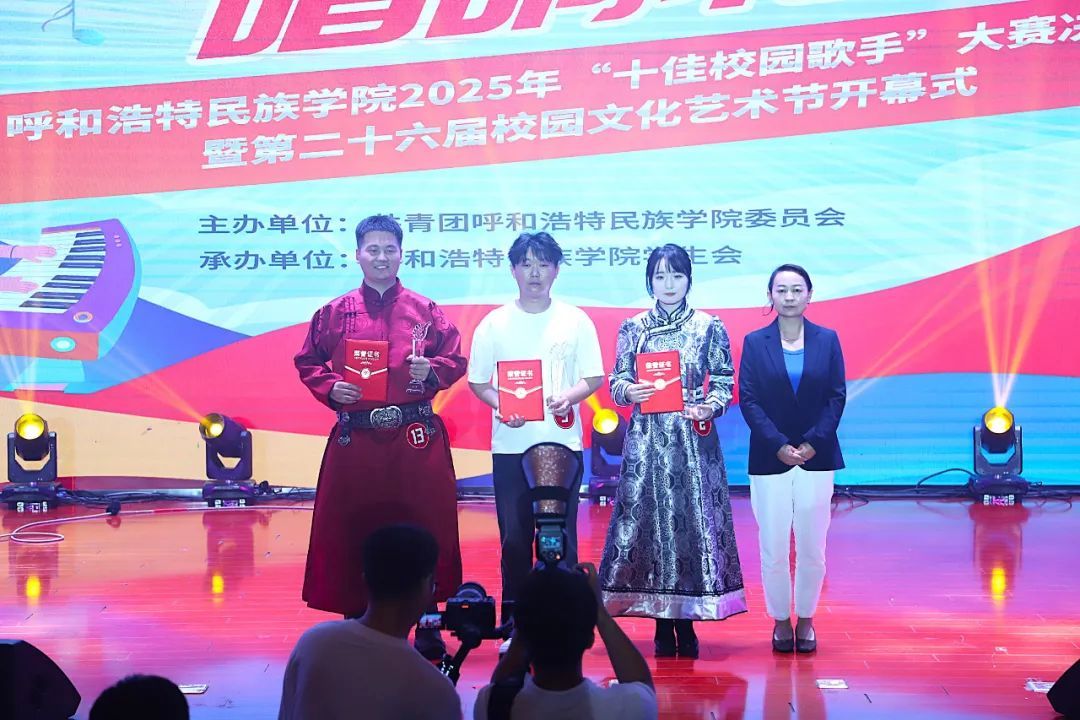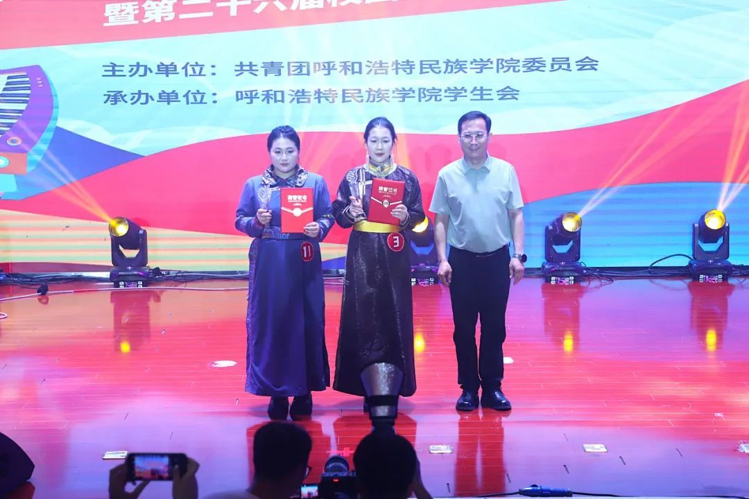 经过评委专业打分与现场氛围综合考量,音乐与舞蹈学院海木日获得专业组一等奖;萨日乃获得专业组二等奖;红霞获得专业组三等奖;白彩云、包萨其日胡获得专业组优秀奖。马克思主义学院郭乌云塔娜获得非专业组一等奖;管理学院康佳鑫、文学院南丁获得非专业组二等奖;新闻传媒学院包楷木、管理学院王鹤然、蒙古学学院柴拉干获得非专业组三等奖;计算机与信息技术学院张晓婧、商学院苗书锐等8名同学获得非专业组优秀奖。新闻传媒学院包楷木获得“最佳台风奖”;马克思主义学院郭乌云塔娜获得“最具网络人气奖”;新闻传媒学院、管理学院、计算机与信息技术学院获得“优秀组织奖”。