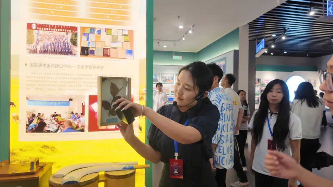 在研学活动现场,全区十八期青马班学员、“北疆小红马”大学生讲解团成员包达日汗,巧妙借助教育馆的展陈资源与数字化互动设备,生动再现了中华民族多元一体格局的形成与发展脉络。在校史馆内,青马班师生们通过“七秩求索—历史厅”、“时代风华—发展厅”、“春华秋实—成就厅”、“党的建设—党建厅”、“展望未来—未来厅”这五个展厅,全方位了解了米乐官网的发展历程和丰硕成果。