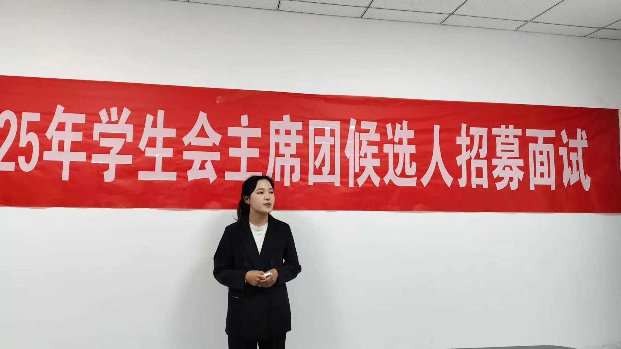 本次面试采用公开答辩形式,秉持“公平、公正、公开、竞争、择优”的原则,旨在为学生会工作选拔出真正有能力、有担当的主席团候选人。候选人依次用PPT展示优势,结合学生工作经历阐述对学生会工作的理解、规划与创新思路,表现自信从容,展示了团队协作、活动策划和应急处理等能力。评委围绕组织管理、创新思维和服务意识提问,全面考察综合素质。