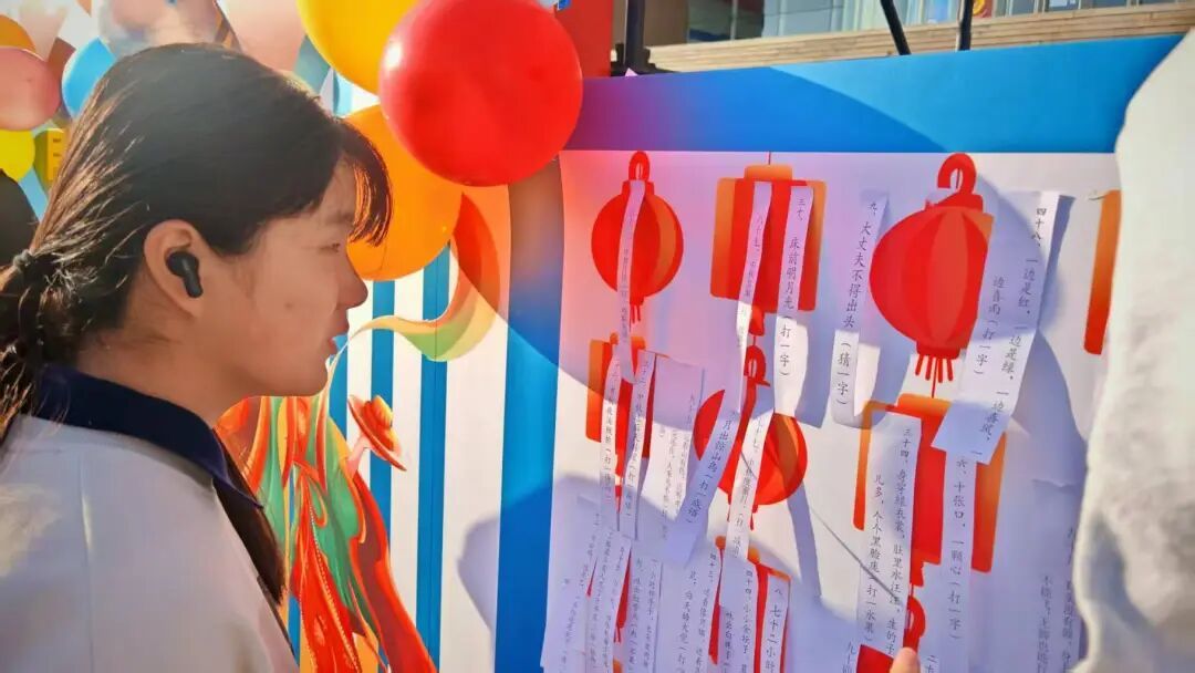 活动伊始,同学们有序抵达天骄广场,活动现场秩序井然,大家精神饱满,满是期待。随后“中秋灯谜会”启动,谜题涵盖中秋诗词、习俗与典故,同学们三五成群讨论,沉浸在智慧与趣味的猜谜中,猜中者可兑换中秋月饼、学习用品、小零食等奖品,兑换处排起长队,现场节日氛围愈发浓厚。