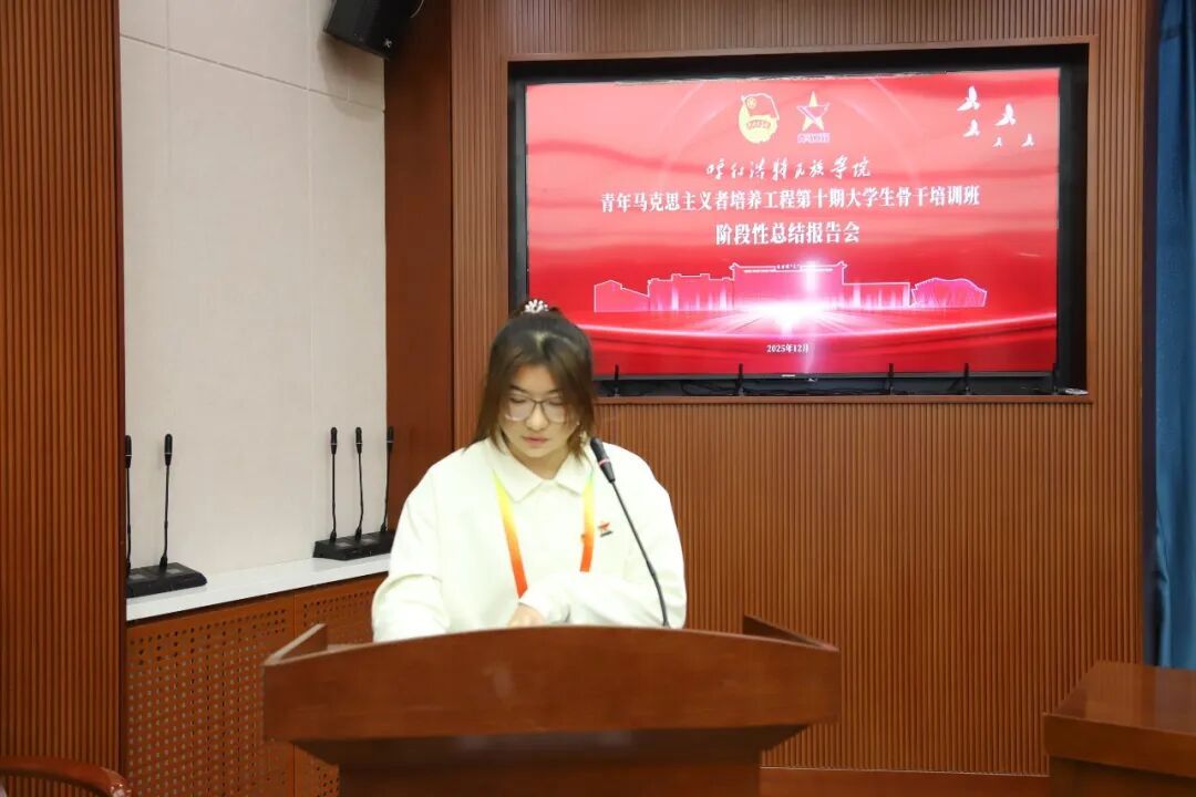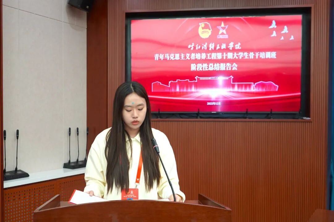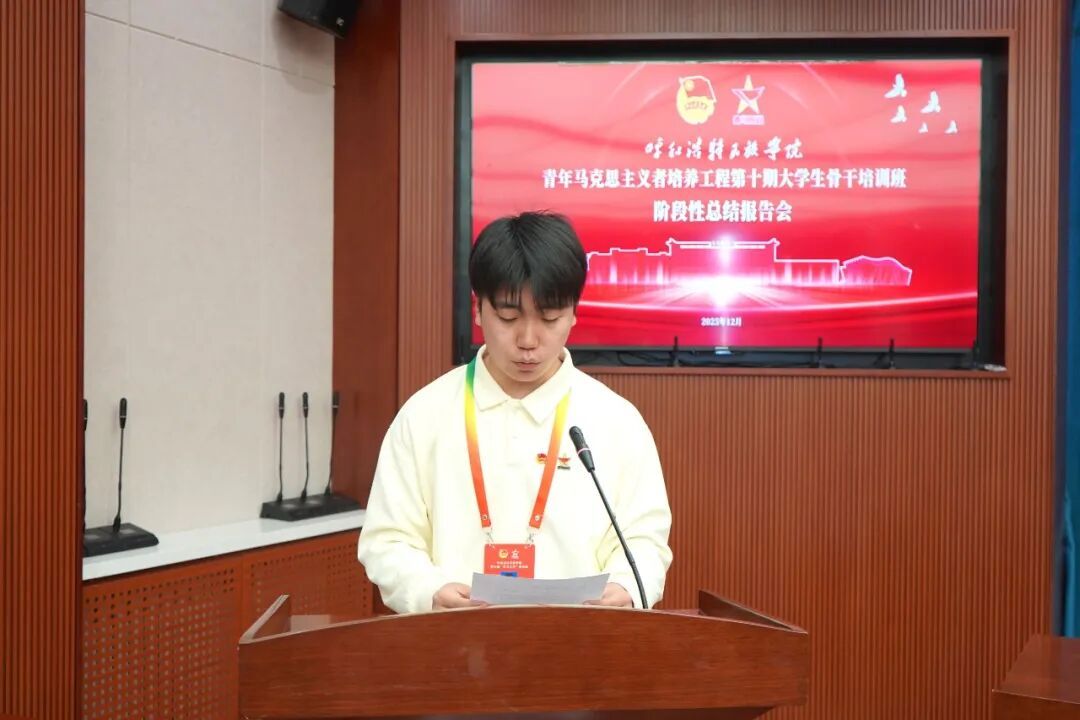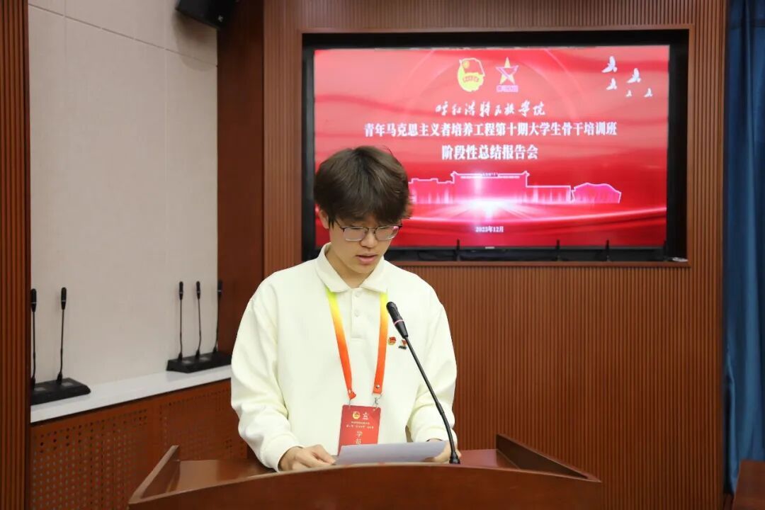 报告会尾声,团委书记张子涵作总结讲话。他既肯定了学员们的阶段性成长,更提出殷切期望,鼓励并引导全体学员精准找到个人发展与时代需求的契合点,在深化理论认知与强化实践能力的过程中,持续筑牢理想信念根基,为时代发展贡献青春力量。