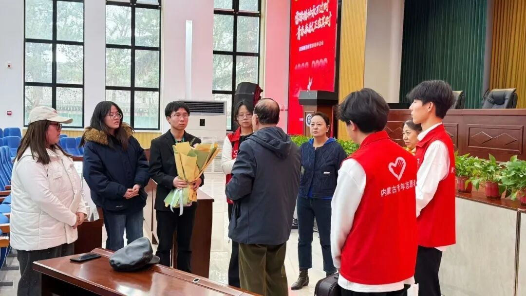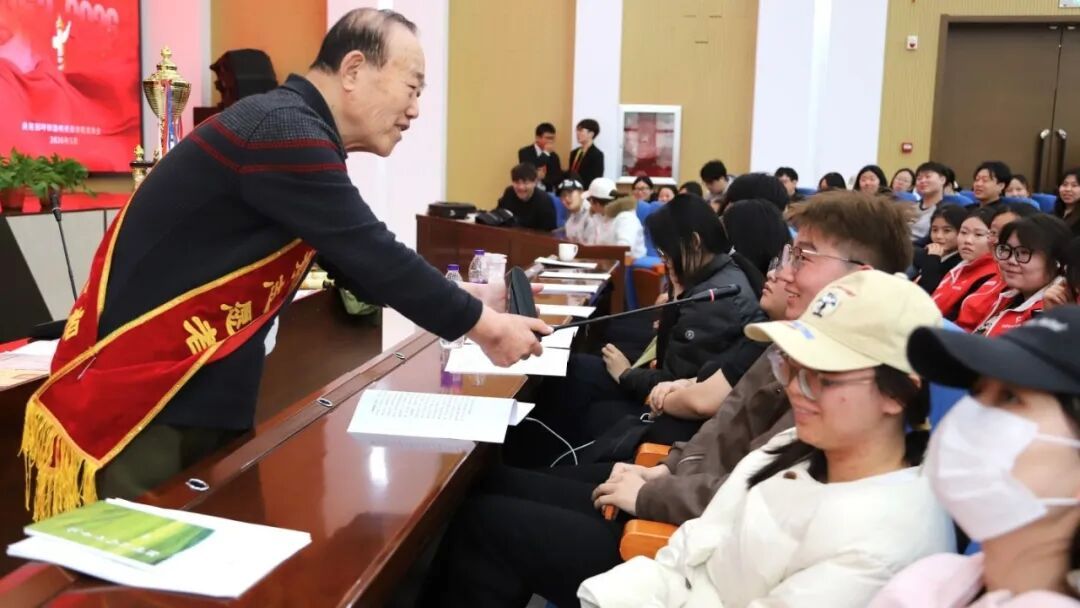 活动中,师生们通过事迹介绍、公益宣传片了解到,拥有60年党龄的魏明同志从军从警四十余载,退休后深耕公益宣讲超740场、帮扶31名困境儿童,斩获北疆楷模、全国道德模范提名奖等多项荣誉,是雷锋精神的生动践行者。魏明同志现场结合自身经历,用朴实的话语分享践行雷锋精神的点滴,让在场师生深受触动。活动最后,学生代表为魏明同志献花,致以崇高敬意。