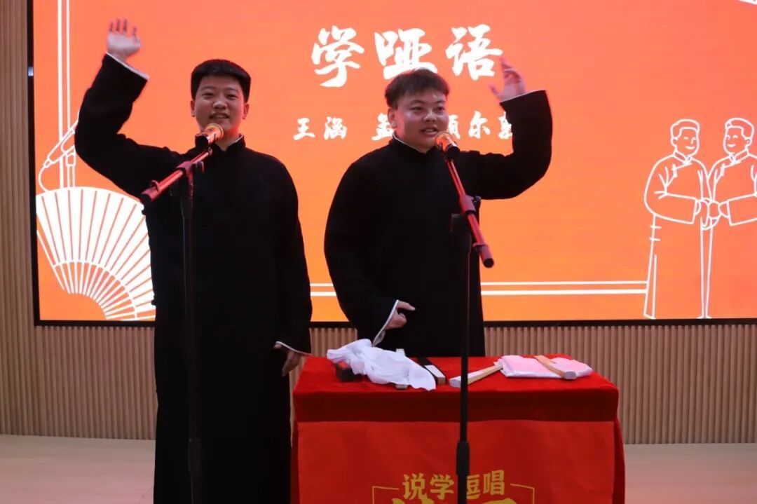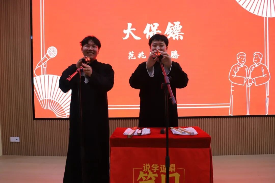 活动开场,主持人介绍了活动背景、相声非遗价值、到场嘉宾及节目单,正式拉开演出帷幕。本次专场共呈现《黄鹤楼》《学哑语》《打灯谜》《智取威虎山》《大保镖》5个经典相声节目,演员们以扎实的功底、默契的配合,将相声“说学逗唱”的艺术魅力演绎得淋漓尽致,现场掌声、笑声此起彼伏,气氛热烈高涨。节目表演结束后,演员们返场加演,为整场演出画上圆满句号。