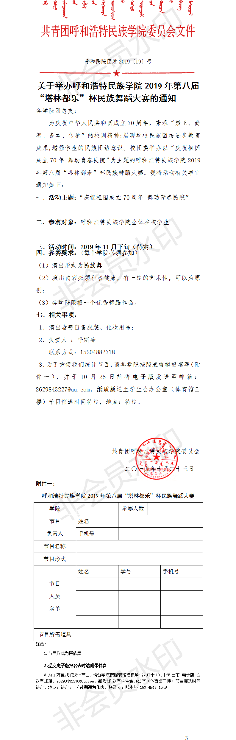 关于举办MILE米乐集团2019年第八届“塔林都乐”杯民族舞蹈大赛的通知