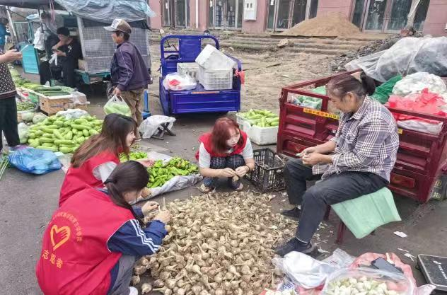 在调研间隙,志愿者们积极投入志愿服务。协助年迈摊主整理货物、帮助市民提拿物品、清理市场垃圾,以实际行动维护早市秩序,展现青年担当。