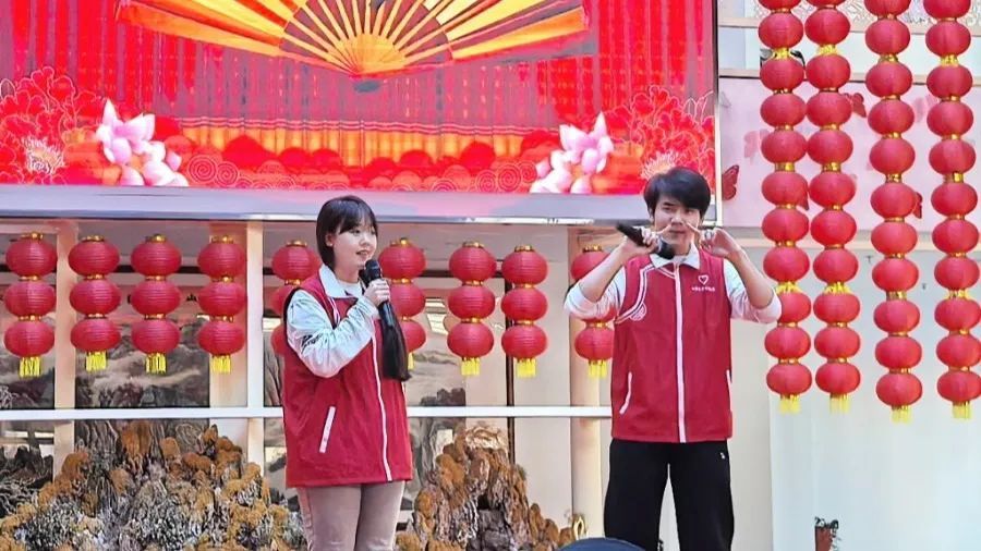 在文艺表演接近尾声时,在服务中心客房参与“爱与陪伴”践行服务的志愿者分享了自己参与此次志愿服务的收获和感悟,体现了当代大学生志愿者的责任与担当。