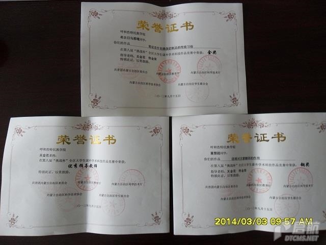 2014年第八届全区“挑战杯”大学生课外学术科技作品竞赛中米乐官网学生喜获金奖,铜奖