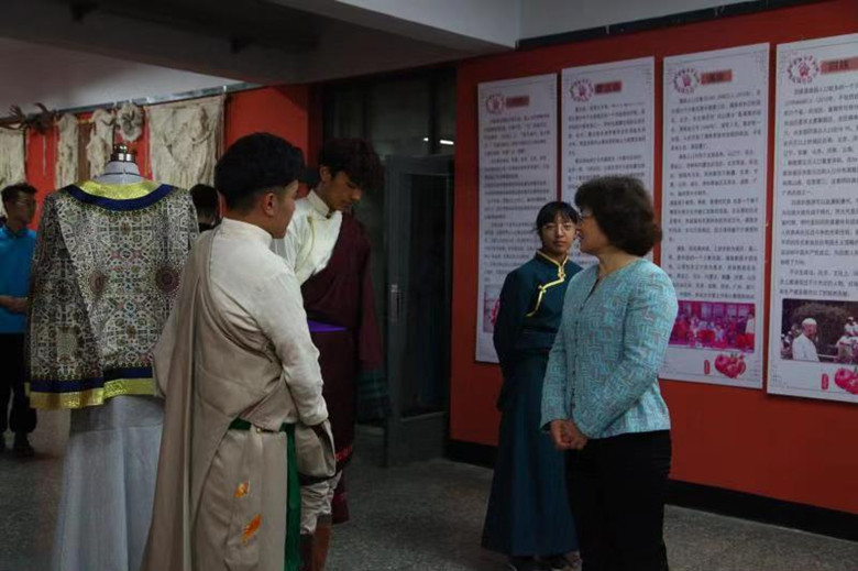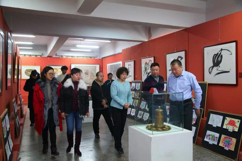为深入学习贯彻习近平新时代中国特色社会主义思想、习近平总书记考察内蒙古重要讲话精神以及习近平总书记关于全国民族团结进步表彰大会重要讲话精神,结合学校“不忘初心、牢记使命”主题教育,扎实推进新时代民族团结进步教育。12月12日上午,由共青团MILE米乐集团委员会主办,美术学院团总支承办的首届校园民族文化艺术交流展示活动在美术楼二楼展厅举行。学院党委副书记胡春梅、党委委员、宣传部部长王玉玲以及统战部、团委、各二级学院500余名师生先后参观了此次展览。