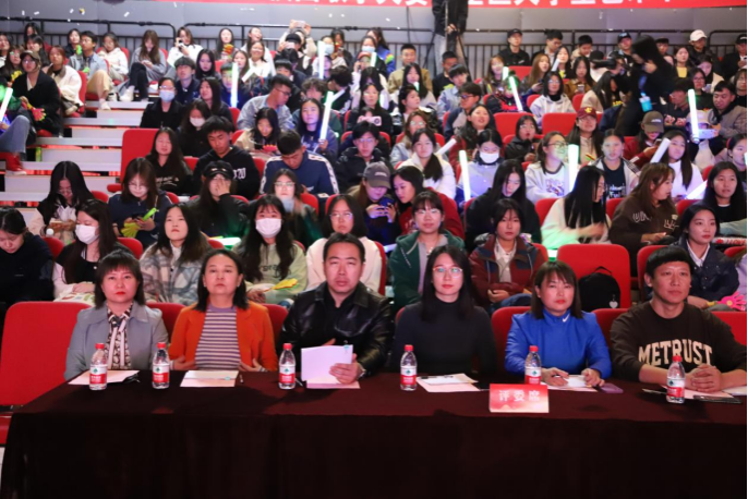 学校团委书记苏伦高娃、各二级学院团总支老师、学生代表近300余人观看大赛。经济管理学院党总支副书记 李云 、法学院党总支副书记姜鹏、团委组织部部长乌依勒斯、音乐学院教师李亦峰、王雪莹担任本次大赛评委。