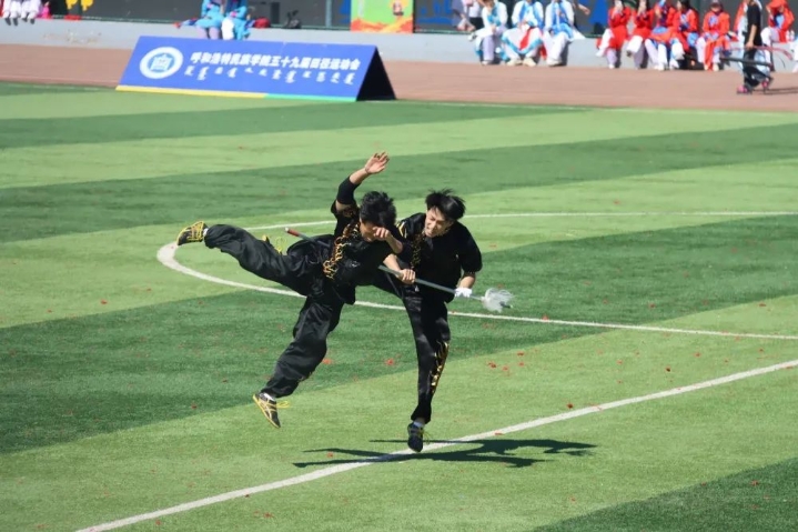 尤为震撼的是武术表演《中华魂》,通过高超的技巧和精湛的动作彰显出中华文化中所蕰涵的力量与美感,长拳、南拳、刀、剑、九节鞭等形式的武术表演展现了中华儿女世代的英姿飒爽,身体的力量、柔韧和速度的完美结合,形成了一幅幅令人叹为观止的画面。