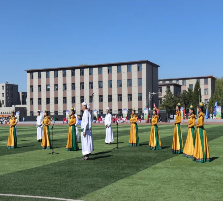 随着舞蹈的谢幕,男子二重唱《红旗飘飘》也响彻在校园的每一个角落,红旗飘扬献祖国,草原儿女共奋进,一段段动听的旋律唱响了同学们的爱国情怀,唱出了新时代青年积极向上的精神风貌。