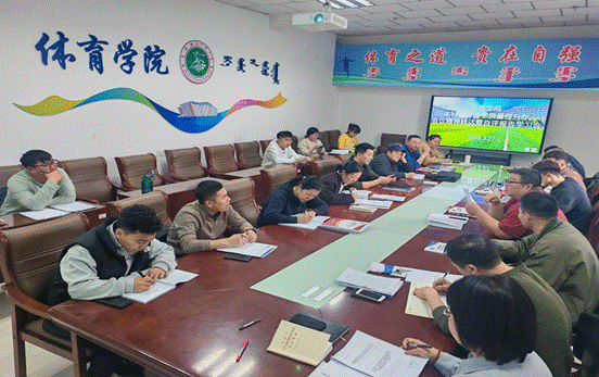 3月27日,体育学院于体育馆三楼会议室召开本科教育教学质量提升年会议精神转达与自评报告学习会,全体教职工齐聚一堂,共商学院发展要事,会议由院长乌日根牧仁主持。