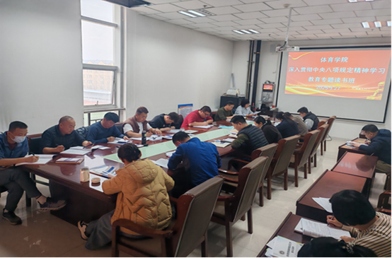 3月27日下午,体育学院在体育馆三楼会议室举办深入贯彻中央八项规定精神学习教育专题读书班,这也是系列活动的第一期。学院中心组全体成员和全体党员参会,会议由党总支书记萨日胡主持。此次读书班旨在引导学院党员干部深刻领会中央八项规定精神,强化党性修养,切实改进工作作风。