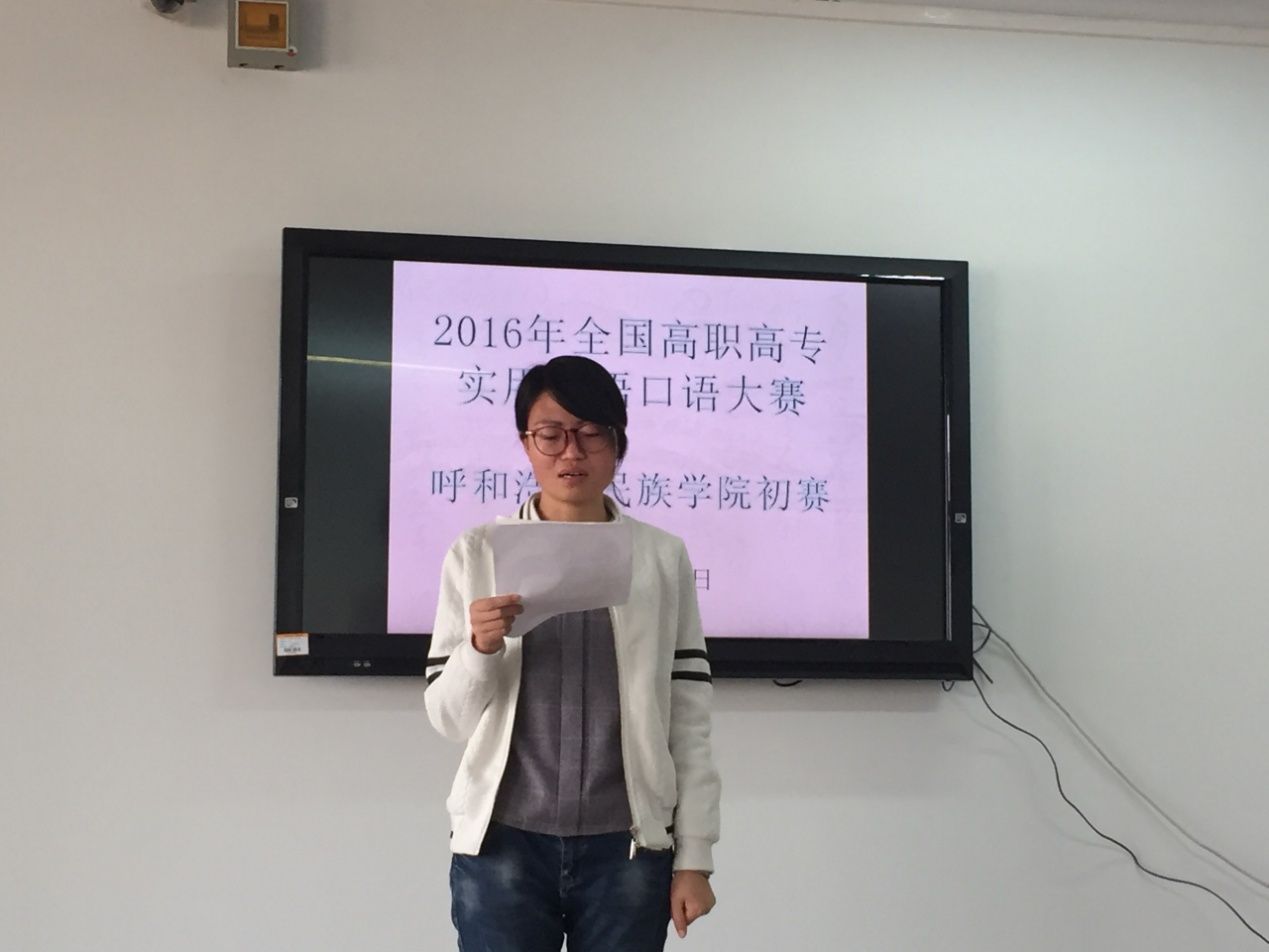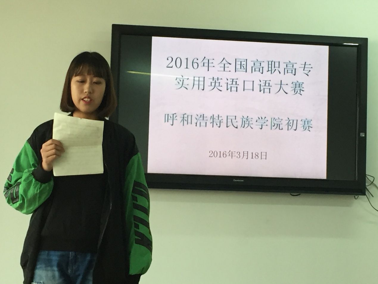 为加强学生英语应用能力培养,展现和提高学生英语口语表达能力,激发大学生学习英语的积极性,并做好“2016年全国职业院校技能大赛暨‘高教社杯’第十二届全国高职高专实用英语口语大赛”内蒙古赛区参赛选手选拔工作,2016年3月18日,我系举行了MILE米乐集团实用英语口语初赛。英语专业及非英语专业各六名学生参加比赛。最终席桃同学和赵紫卉同学获得英语专业组特等奖,刘晓溪同学和黄鑫同学获得非英语专业组特等奖,将代表学院参加内蒙古赛区复赛。