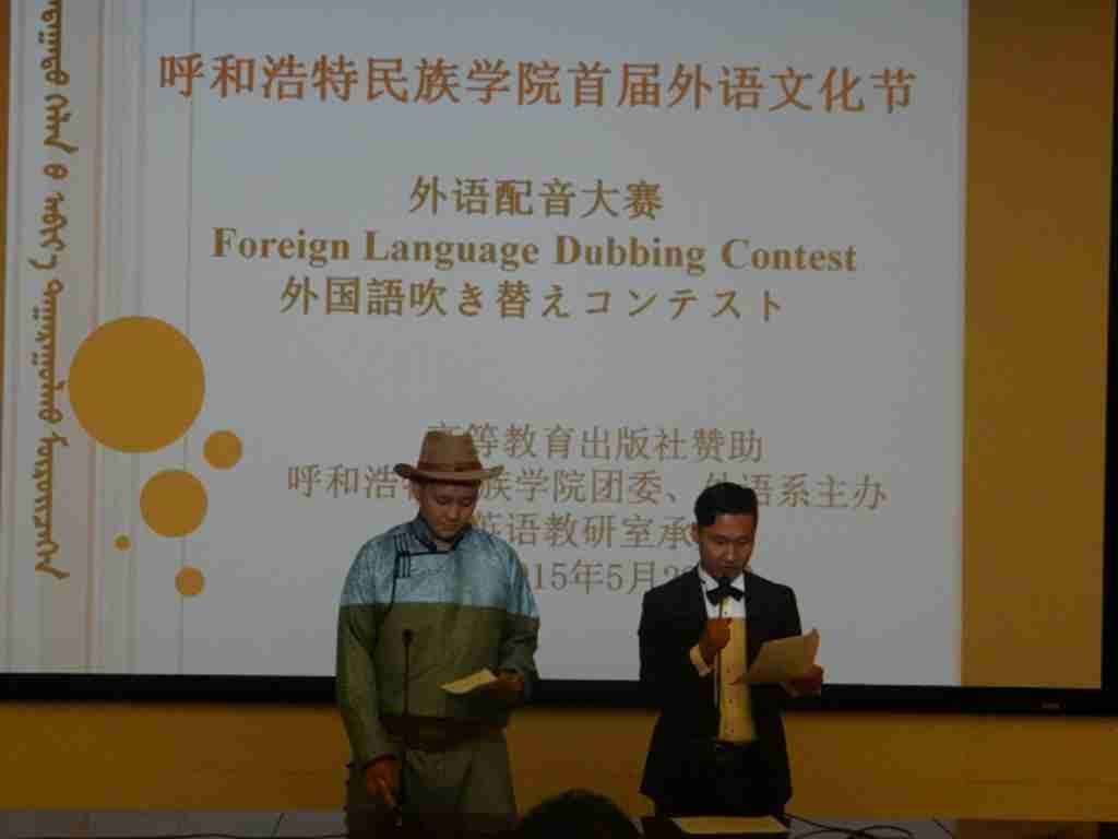 2015年5月28日晚,MILE米乐集团首届“外语文化节” 系列活动之一的外语配音大赛在学院图书馆一楼报告厅隆重举行。本次大赛由外语系携手学院团委共同主办,英语教研室承办,高等教育出版社赞助。大赛特邀苏日嘎拉图老师、红霞老师、永井康老师、王磊老师和曼都呼老师担任评委。