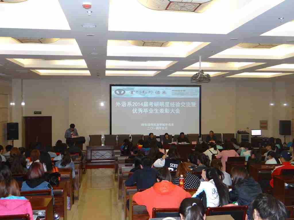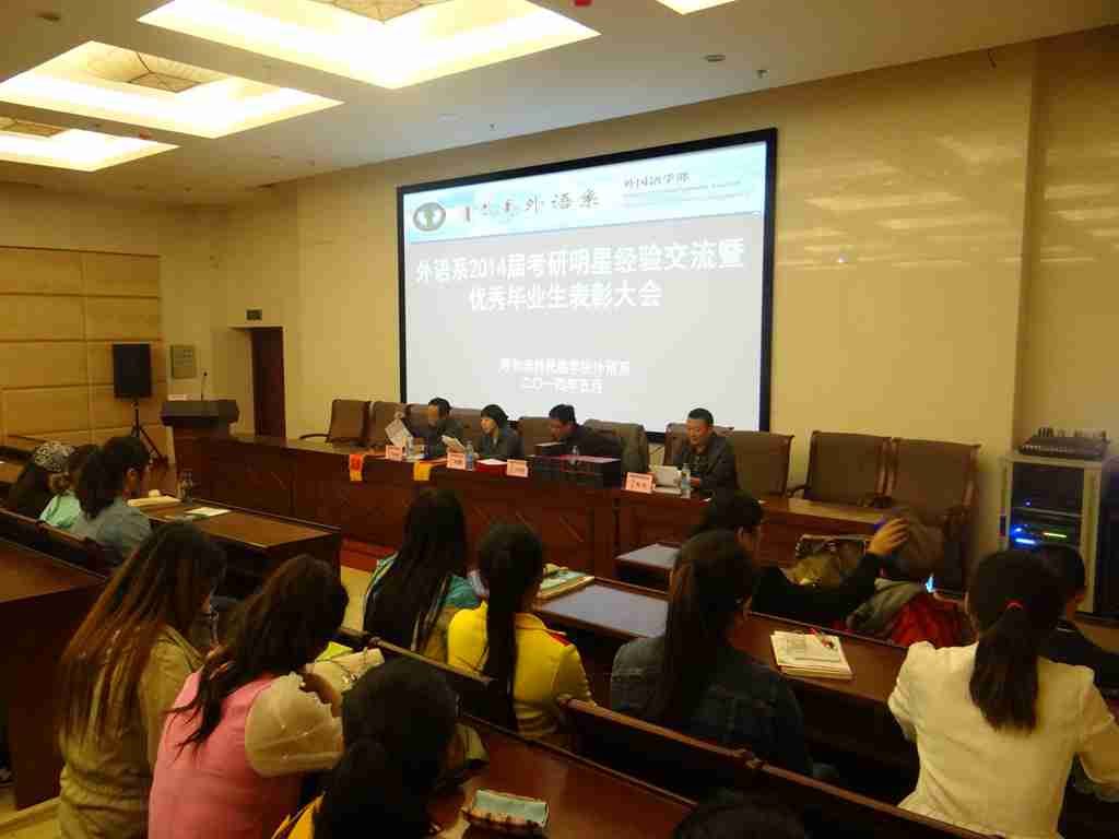 外语系于2014年5月13日晚,在学院图书馆一楼报告厅举行了2014届考研明星经验交流暨优秀毕业生表彰大会。