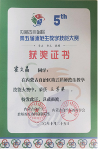 外国语学院高度重视本次大赛,秉持“以赛促训、以赛促学、以赛促教、赛教结合、提高能力”的大赛宗旨,赛前按照全区师范生比赛规则和流程,精心组织了班级赛、学院赛,决出参加校赛和区赛的优秀选手。指导教师多次开展小组研讨,指导学生认真备课、细心打磨、不断演练,最终,米乐官网小学教育(英语方向)专业高敏、霍文晶两位同学在自治区比赛中分别荣获小学教育英语组三等奖;萨仁格日乐、红鸽两位老师荣获“优秀指导教师奖”。