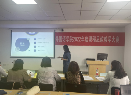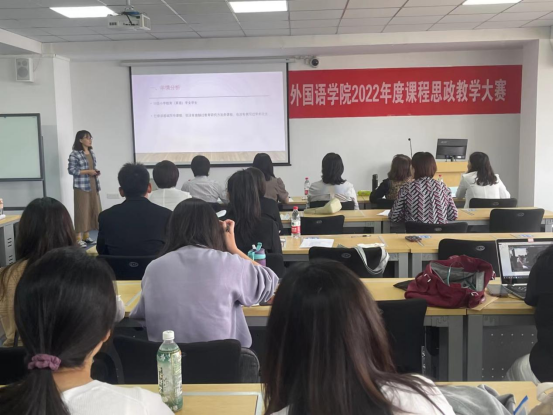 为引导各专业、各课程找准“课程思政”切入点,开放式探索“课程思政”教学建设路径,为老师们提供相互学习、思维碰撞、展示风采的舞台,外国语学院于2022年9月16日下午在都林楼606教室成功举办了外国语学院2022年度课程思政教学大赛。
