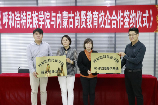 为进一步加强就业创业基地和实习实践基地建设,加深与企业的合作关系,9月15日,外国语学院院长肖查娜、党总支副书记红梅、英语教育教研室主任乌优、辅导员雷旭平一行赴内蒙古尚贤教育科技有限责任公司举行就业创业基地和校外实习实践基地签约挂牌仪式,受到内蒙古尚贤教育科技有限责任公司刘凤廷总经理的热情接待。