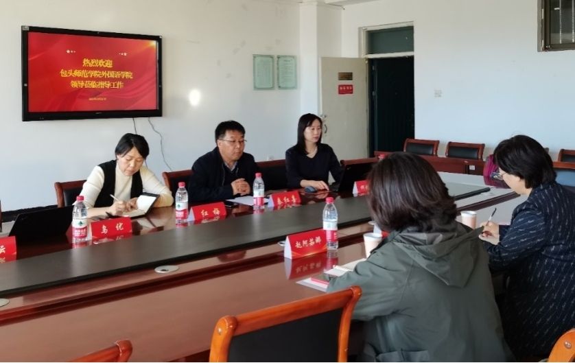 10月19日下午,包头师范学院外国语学院院长赵阿茹娜一行来米乐官网调研走访交流,外国语学院副院长秦红喜及相关人员参加了调研活动。