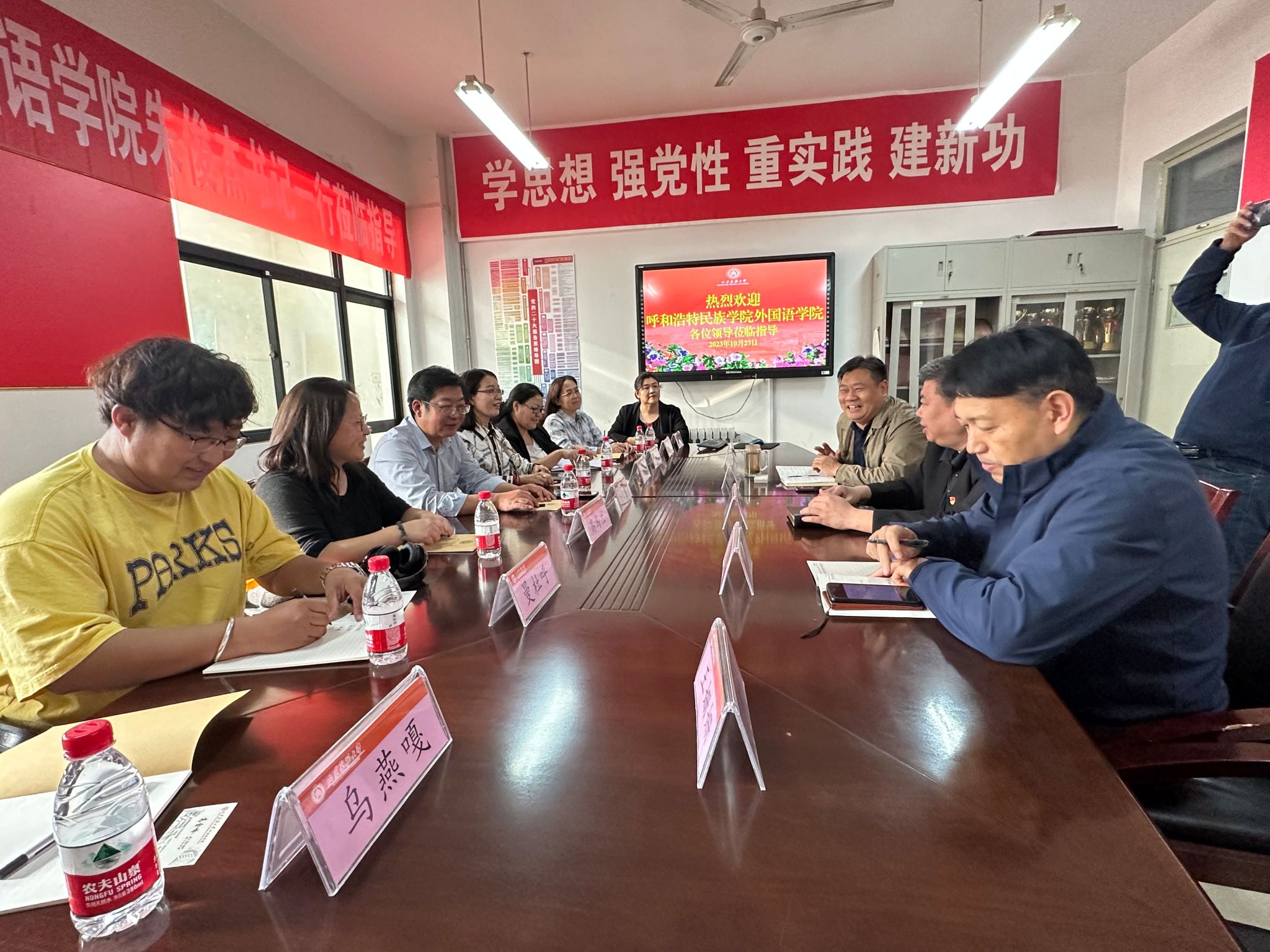 为更好地落实《MILE米乐集团“十四五”事业发展规划》精神,进一步优化本科资源配置,按照社会需求做好专业转型发展,为新时代社会主义现代化建设培养合格的外语类人才,2023年10月27日,外国语学院党总支书记朱俊杰、副院长红鸽带队赴山东建筑大学外国语学院进行调研学习交流。山东建筑大学外国语学院召开座谈会,党委书记李杰瑞,院长高金岭、副院长李桂春、副院长胡天国以及教务主任王珊珊、教研室主任王振华参与了双方的交流。