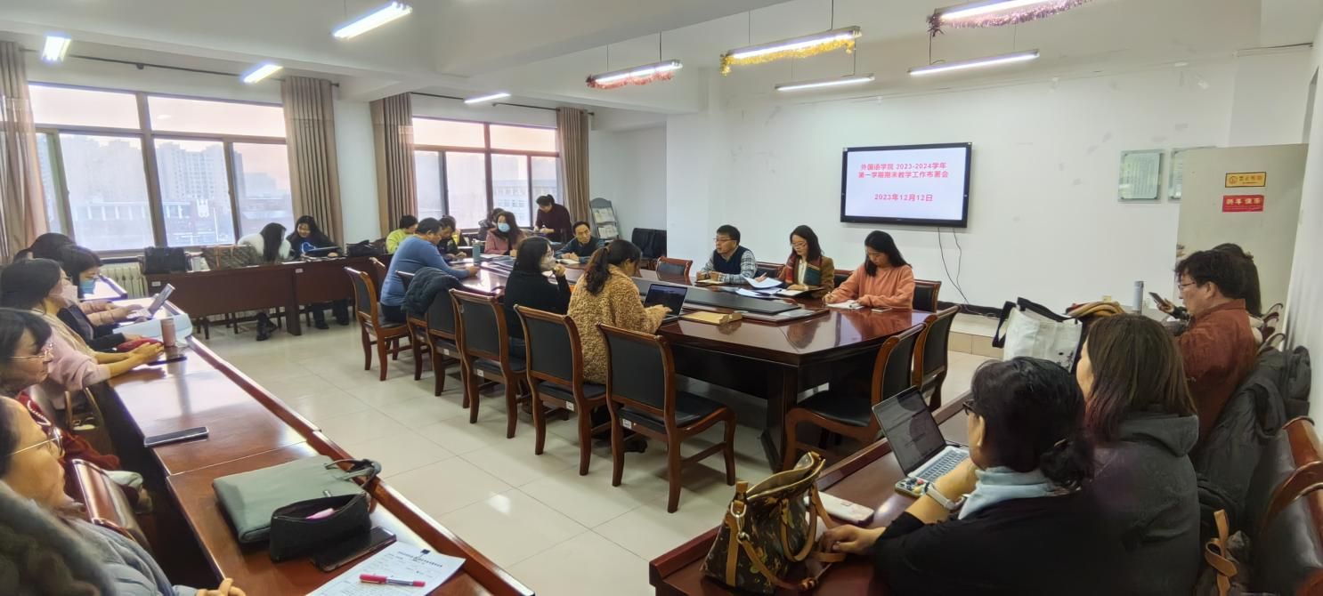 外国语学院于12月12日在学院会议室举办2023-2024学年第一学期期末教学工作布署会,会议由秦红喜副院长主持,外国语学院全体教职工参加。