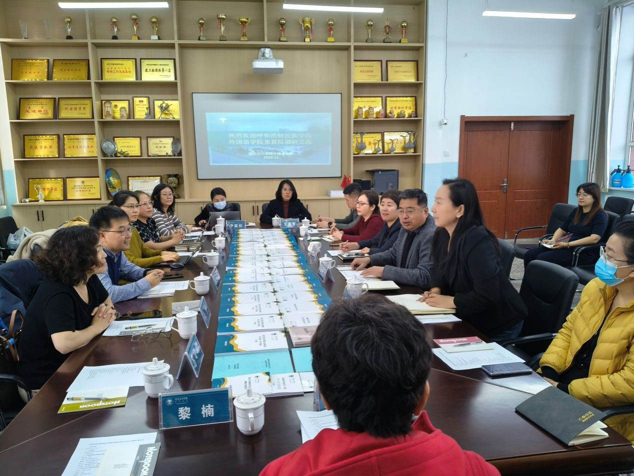 11月3日至5日,外国语学院院长秦红喜、英语教研室主任乌优、日语教研室主任高乌兰、公共英语教研室主任敖登、英语教研室骨干教师乌日娜、翻译教研室骨干教师陈玉红一行六人赴呼伦贝尔学院外国语学院与文学院调研学习。