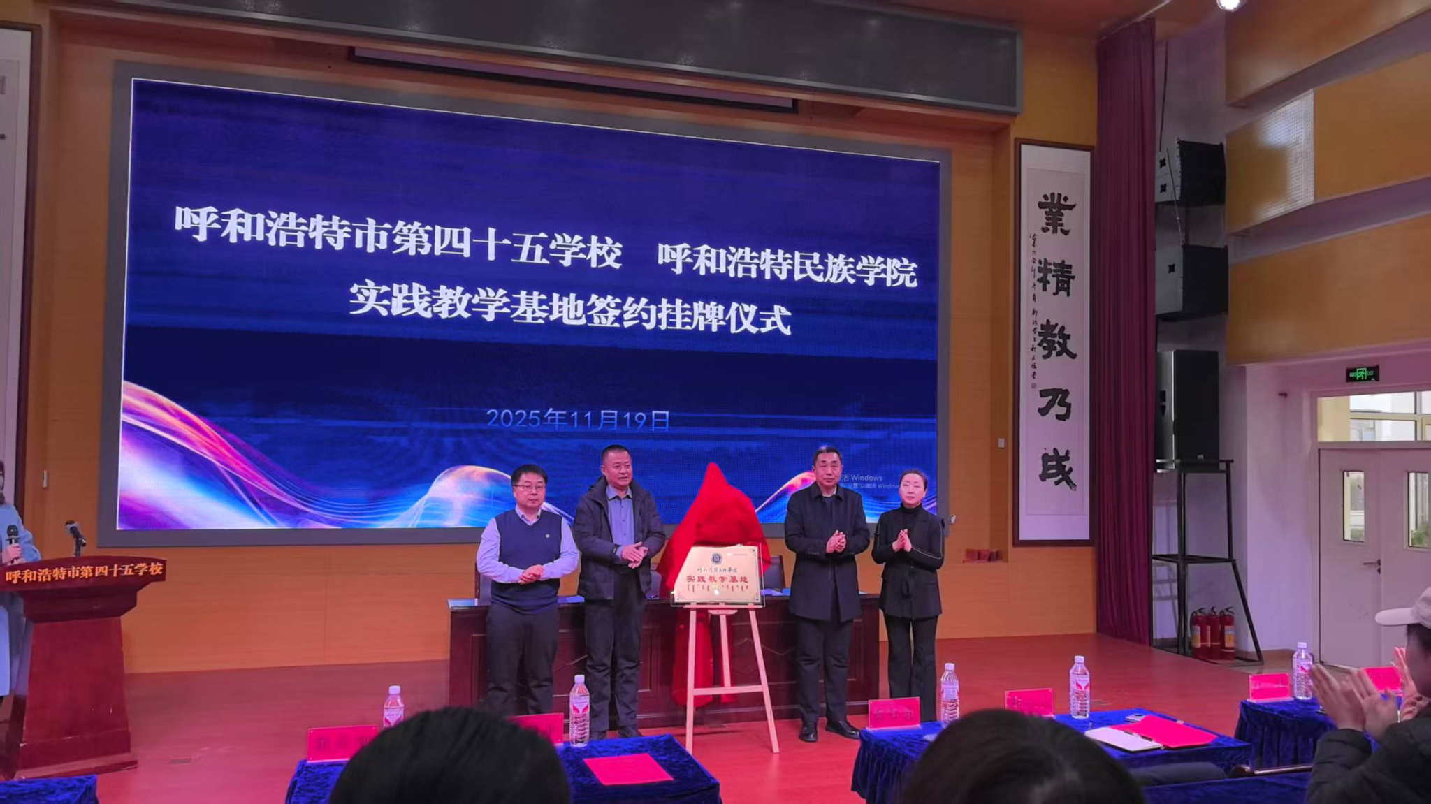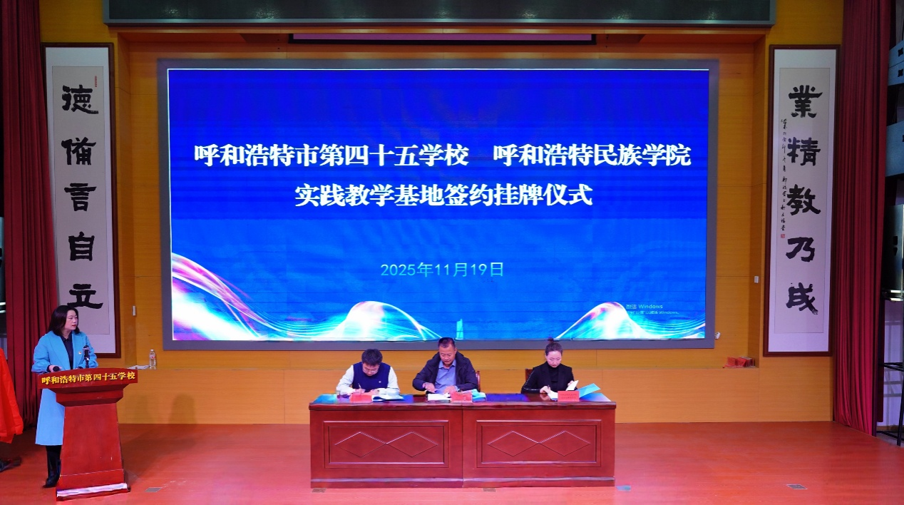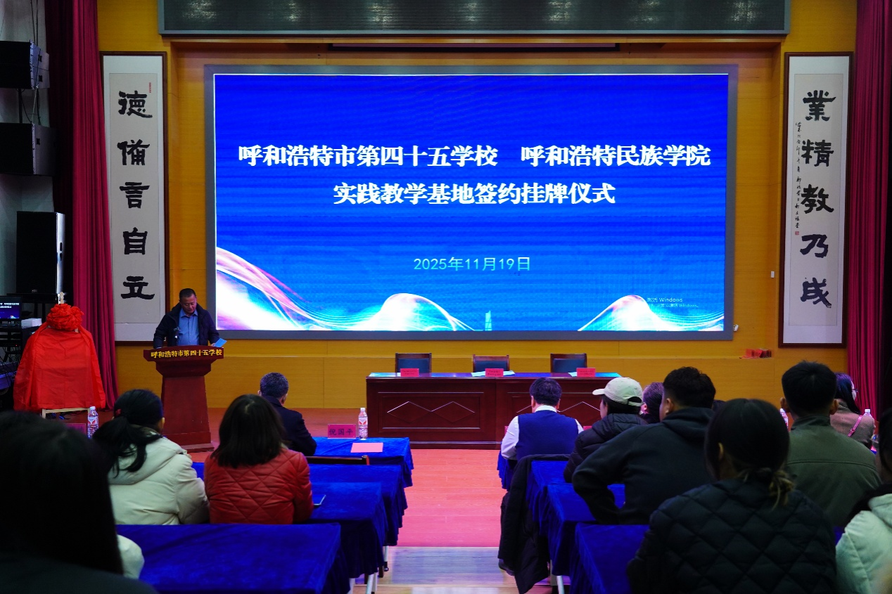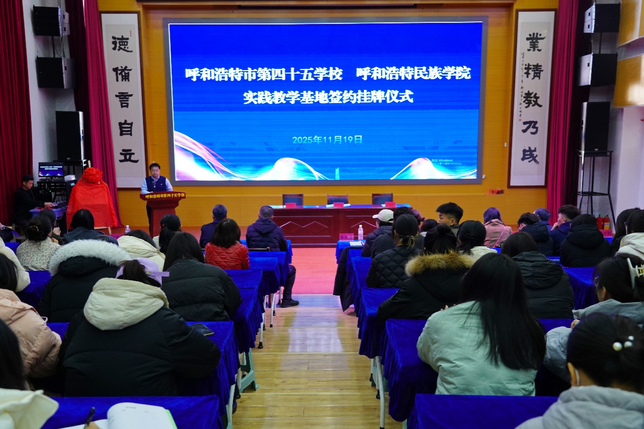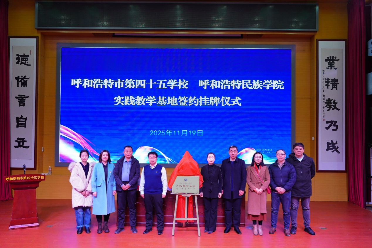 为深化实践教学改革、创新人才培养模式,11月19日,米乐官网外国语学院、音乐与舞蹈学院在呼和浩特市第四十五学校隆重举行“实践教学基地”挂牌仪式。外国语学院院长秦红喜、副院长红鸽,音乐与舞蹈学院副院长韩木兰等一行出席活动。呼和浩特市第四十五学校党总支书记郭月刚、校长倪国平、副校长张雅楠热情接待并全程参与。