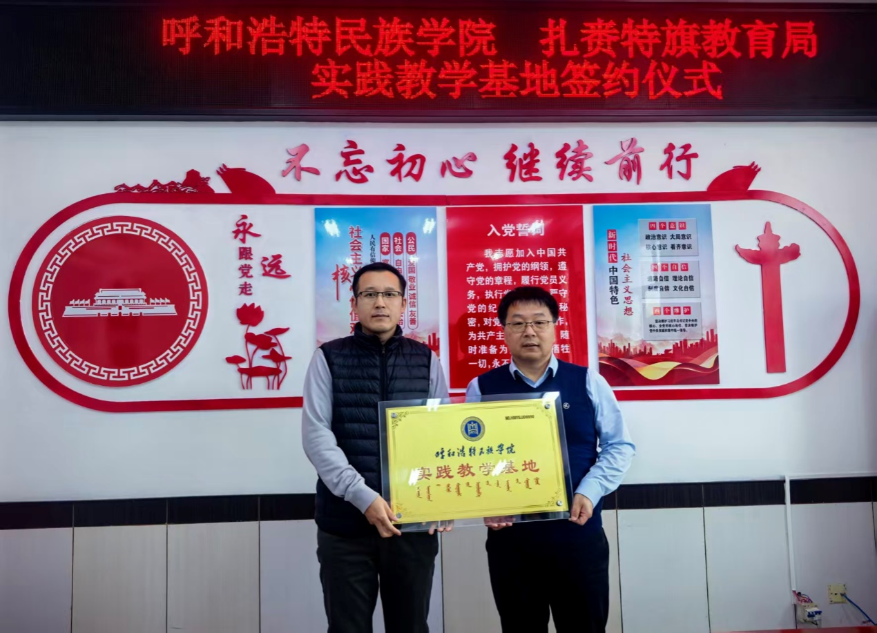 为深化实践教学改革、创新人才培养模式,11月24日,米乐官网外国语学院与兴安盟扎赉特旗教育局在扎赉特旗隆重举行“实践教学基地”挂牌仪式。外国语学院院长秦红喜、党政办公室主任胡日查毕力格等一行出席活动;扎赉特旗教育局副局长孙胜利、副局长朱满达热情接待并全程参与。