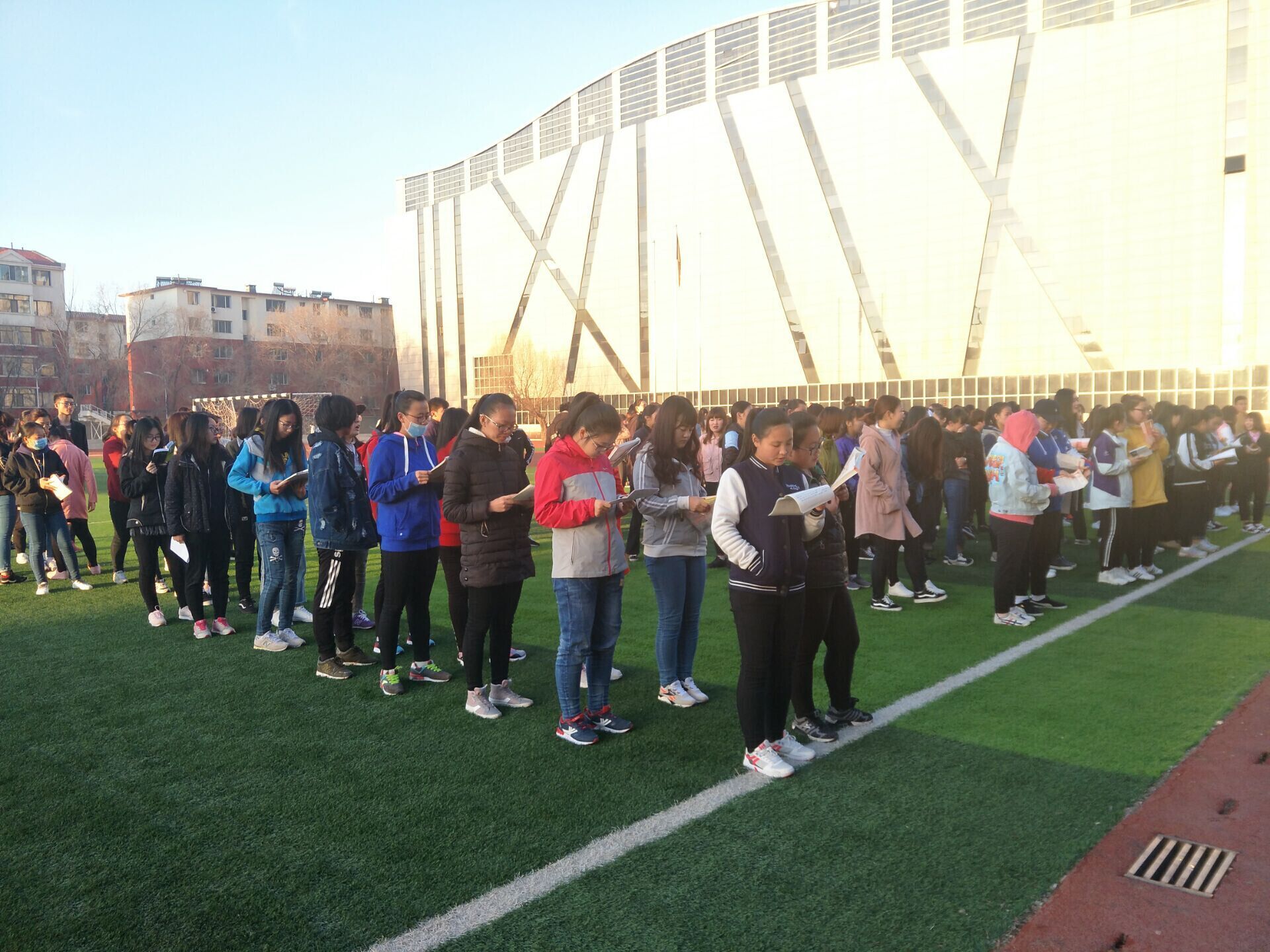 响应米乐官网“学风建设”号召,为进一步推动外语系学风建设工作,“以学为前提,以做为着力点”,2017年3月28日起外语系开展早操、早读活动,2016级全体同学参与。