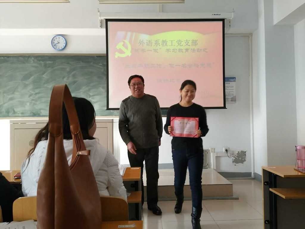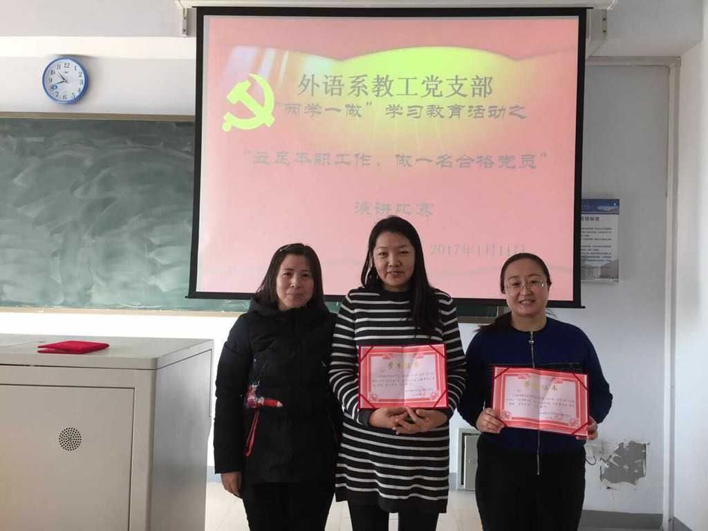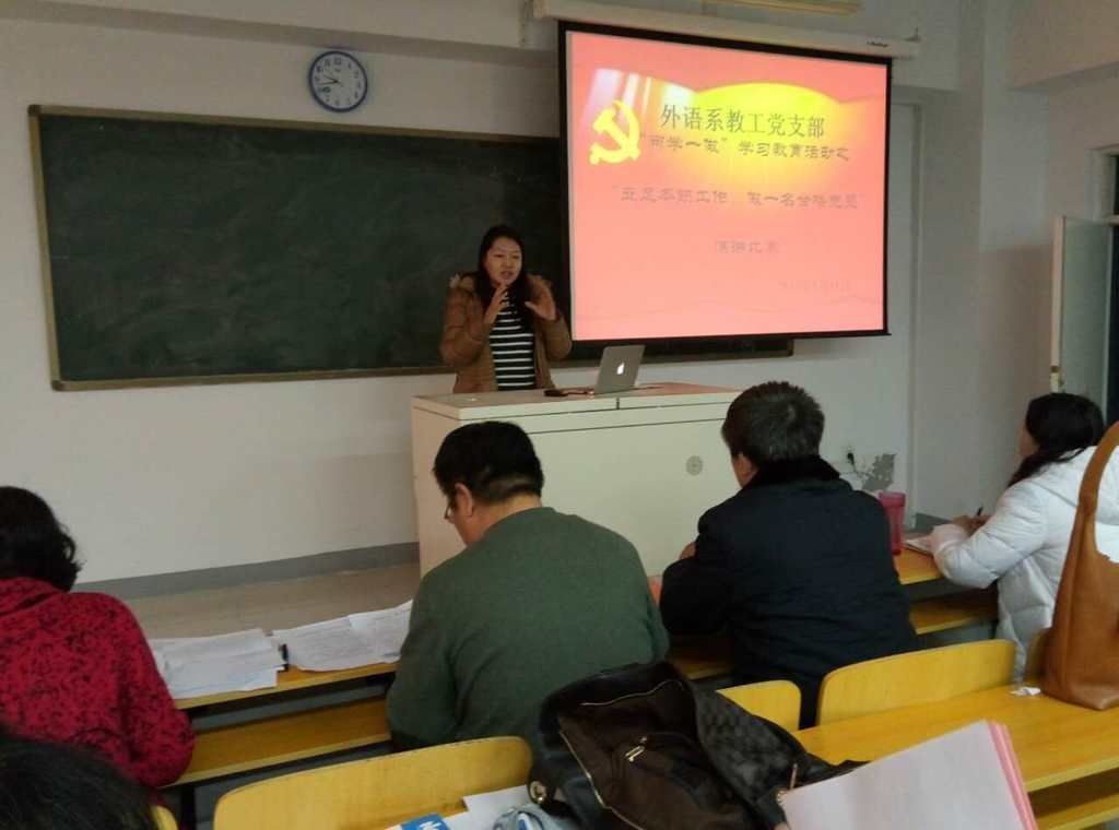 1月11日上午,外语系教工党支部举办 “立足本职工作,做一名合格党员”主题演讲比赛。外语系14位年轻党员参加比赛。
