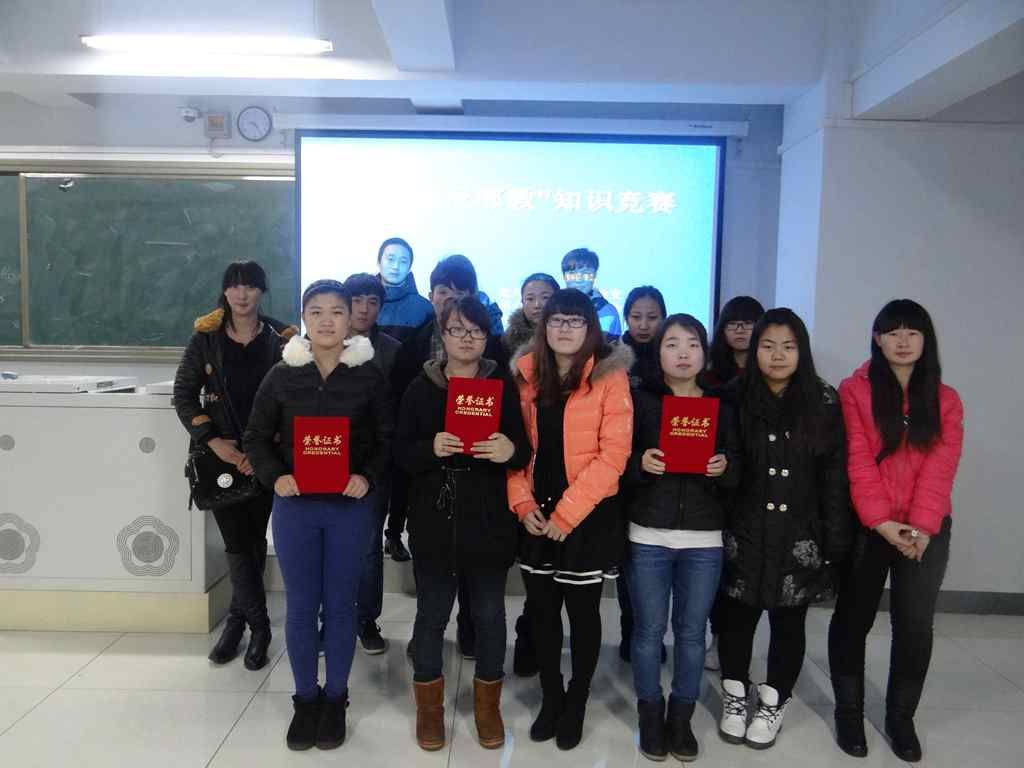 经过两轮的淘汰赛共有六个班级进入了决赛,经过紧张而又激烈的决赛,最终2012日语1班获得团体一等奖,2012小教1班获得团体二等奖,2013级日语班获团体三等奖,2013英教4班 、2013小教2班被评为优秀组织奖。