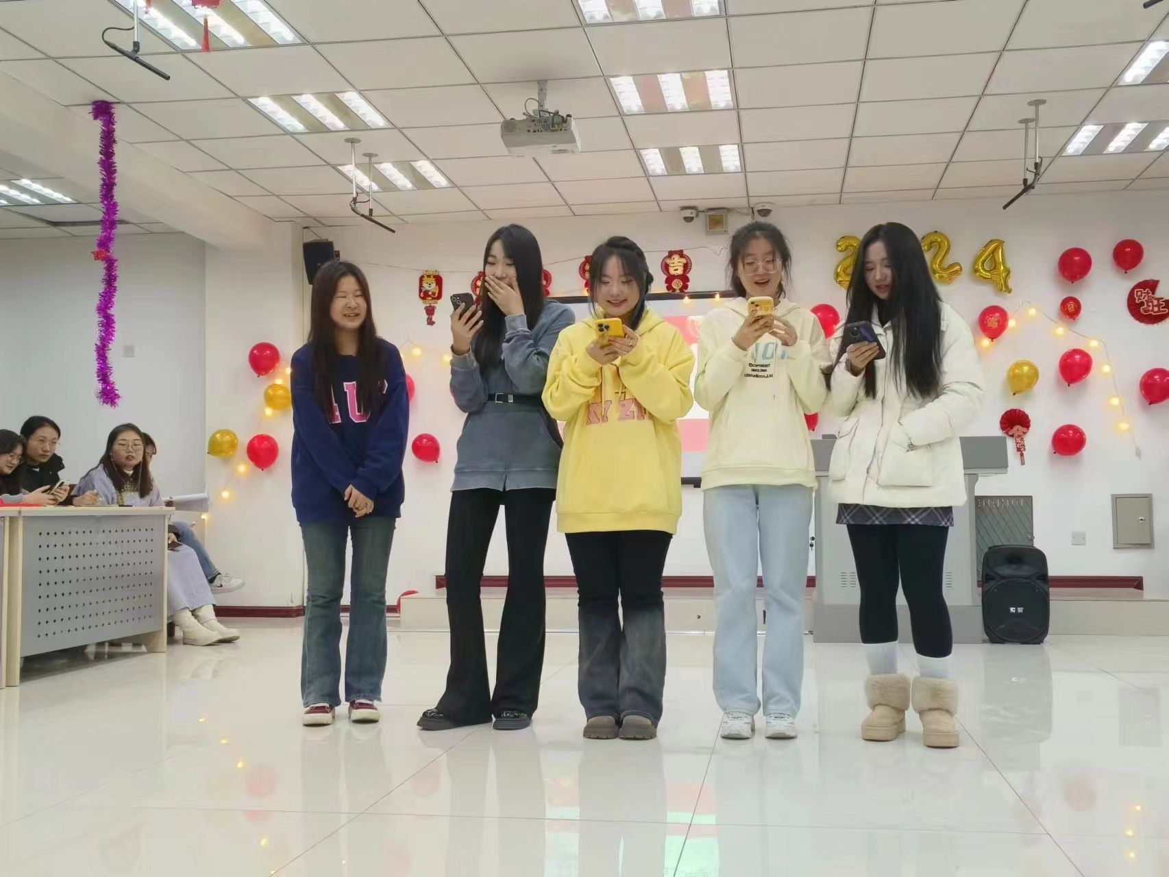 本次茶话会节目形式多样、内容丰富,包括歌曲、舞蹈、器乐合奏、合唱等共七个节目。现场气氛热烈,掌声雷动。茶话会在文体部的合唱《我记得》中拉开序幕,生活部唱跳串烧精彩纷呈,团务部和网宣部选送的蒙语歌曲、纪检部选送的歌曲《我们俩》以及办公部选送的葫芦丝演奏瑶族歌曲《月光下的凤尾竹》带来阵阵掌声;社团部带来的合唱歌曲《日不落》更是将活动推向一个小高潮。随着茶话会的进行,节目中穿插的“句子接龙”“天气预报”“一二三看这边”“终极密码”“不要做挑战”“正话反说”“抢凳子”等趣味横生的互动小游戏,更是让大家欢乐不已,同学们相互配合,现场氛围其乐融融。学生会成员纷纷表示:再欢乐的茶话会也有结束的一刻,可我们的热情却永不散场,作为学生干部,一定要有坚定的立场,要有大局意识,努力提高自身的各项能力,一同创造我们更加美好的明天。