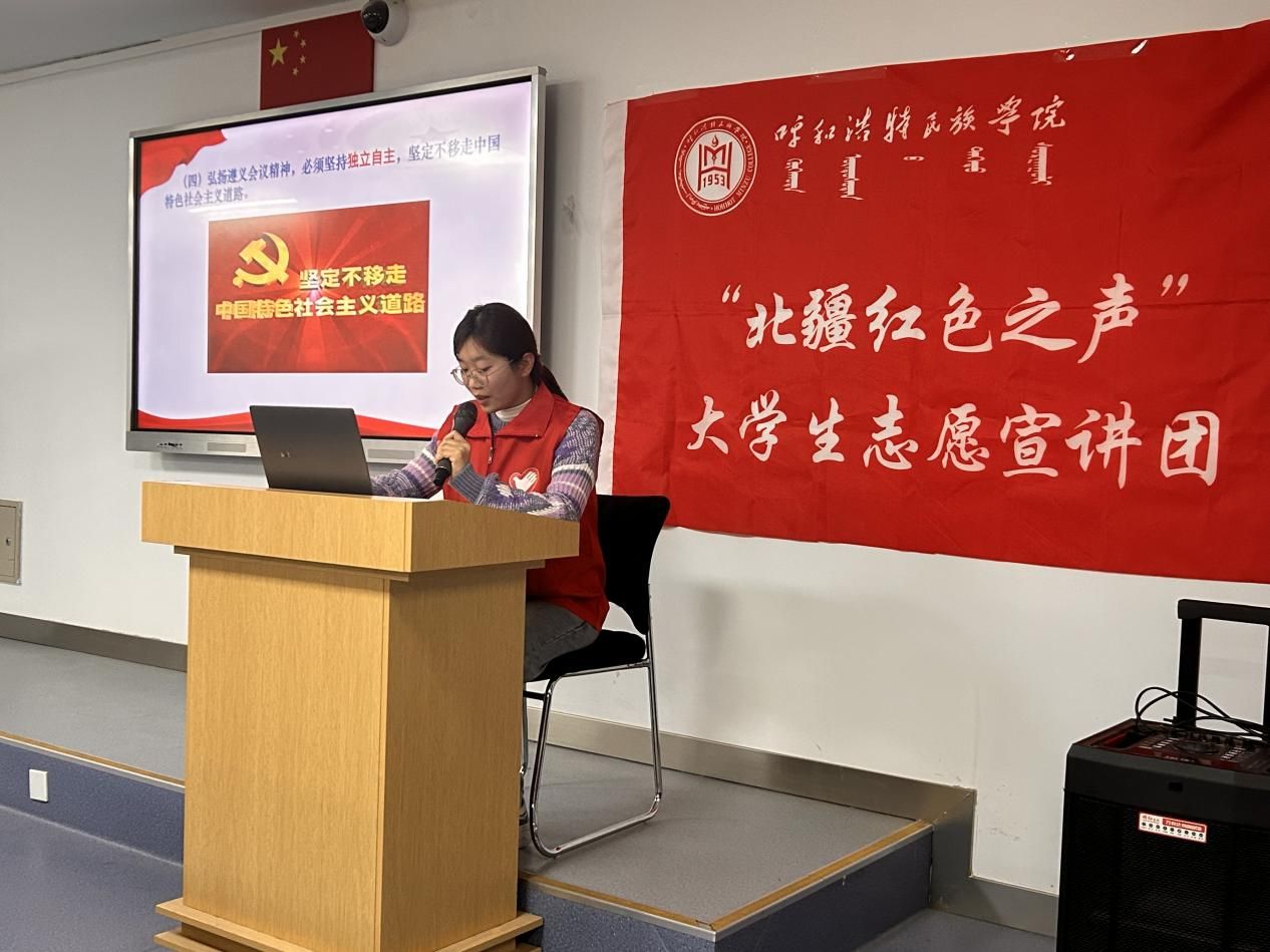 12月8日晚7时,2024年全国大学生遵义会议精神志愿宣讲团入选团队——MILE米乐集团“北疆红色之声”大学生志愿宣讲团在都林楼506智慧教室面向外国语学院学生成功开展了首场宣讲活动。