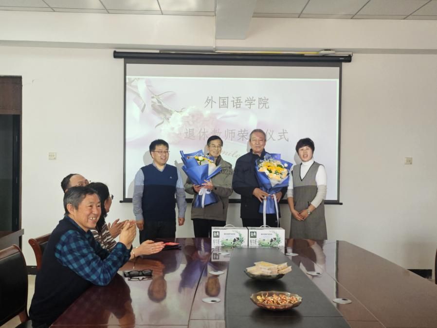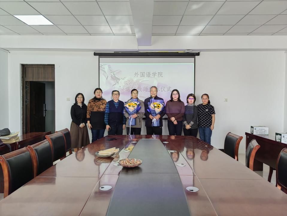 1月8日,外国语学院在学院会议室隆重举行荣休仪式,向为学院发展倾注心血、奉献青春的退休教师特木尔巴根、宝金山表达诚挚的敬意与感谢。此次仪式由秦红喜院长、红梅副书记主持,部分教职工共同见证了这一具有纪念意义的时刻。