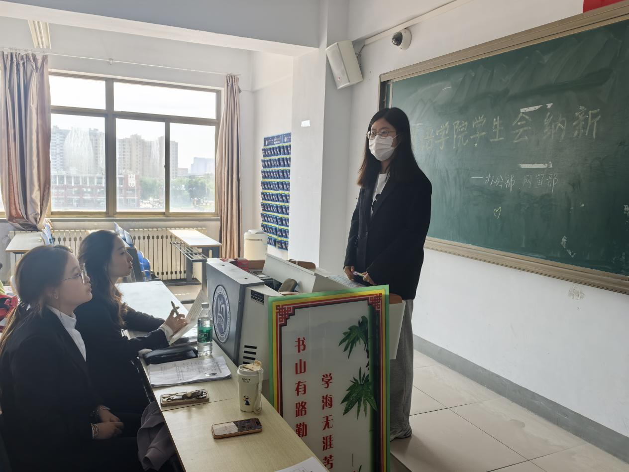 本次纳新面试分为自我介绍、现场问答、情景模拟等环节。在自我介绍环节,新生们条理清晰地展示个人特长与能力;现场问答中,他们凭借对学生工作的深刻理解,给出了富有创意的回答;情景模拟环节则考验了应聘者的应急处理与团队协作能力,充分展现了新生们的综合素养。学生会主席及各部门部长严格遵循公平、公正、公开的原则,从表达能力、应变能力、责任心等多方面对候选人进行综合评估。