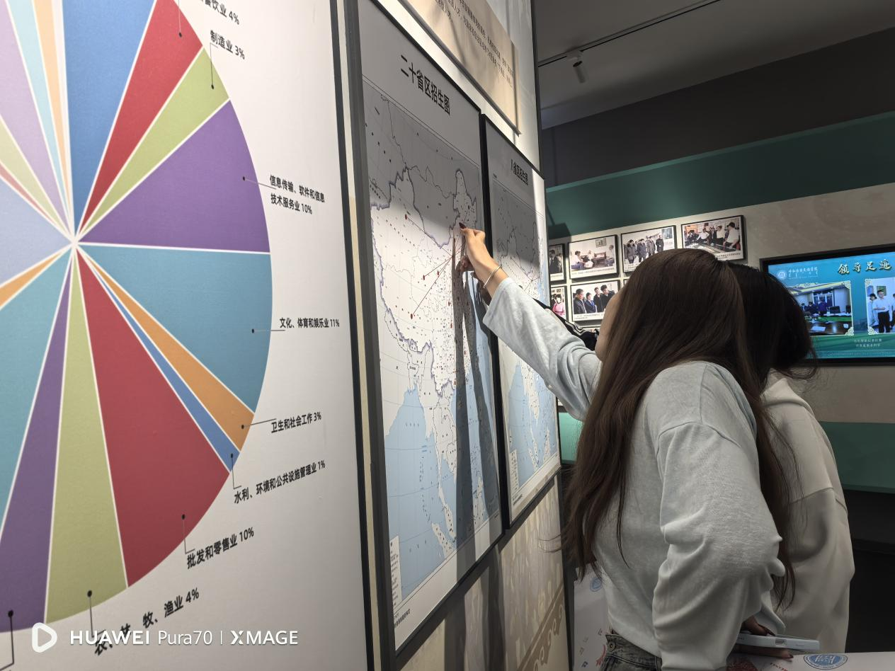 在铸牢中华民族共同体意识教育馆内,新生们在讲解员的引导下,依次参观了各个展区。通过丰富的历史图片、珍贵的文物实物、生动的场景复原,同学们系统了解各民族在长期历史进程中交往交流交融的光辉历程,深刻认识到“汉族离不开少数民族,少数民族离不开汉族,各少数民族之间也相互离不开”的深刻内涵。随后,新生们来到校史馆。馆内的每一张照片、每一件展品、每一段文字,都承载着学校的厚重历史与精神传承。从学校建校初期的艰难创业,到如今在学科建设、人才培养、科研创新等方面取得的丰硕成果,讲解员娓娓道来,将学校的发展脉络清晰地呈现在新生面前。同学们认真聆听学校知名校友的奋斗故事,感受着学校“崇正、尚智、务本、传承”校训的深刻内涵。