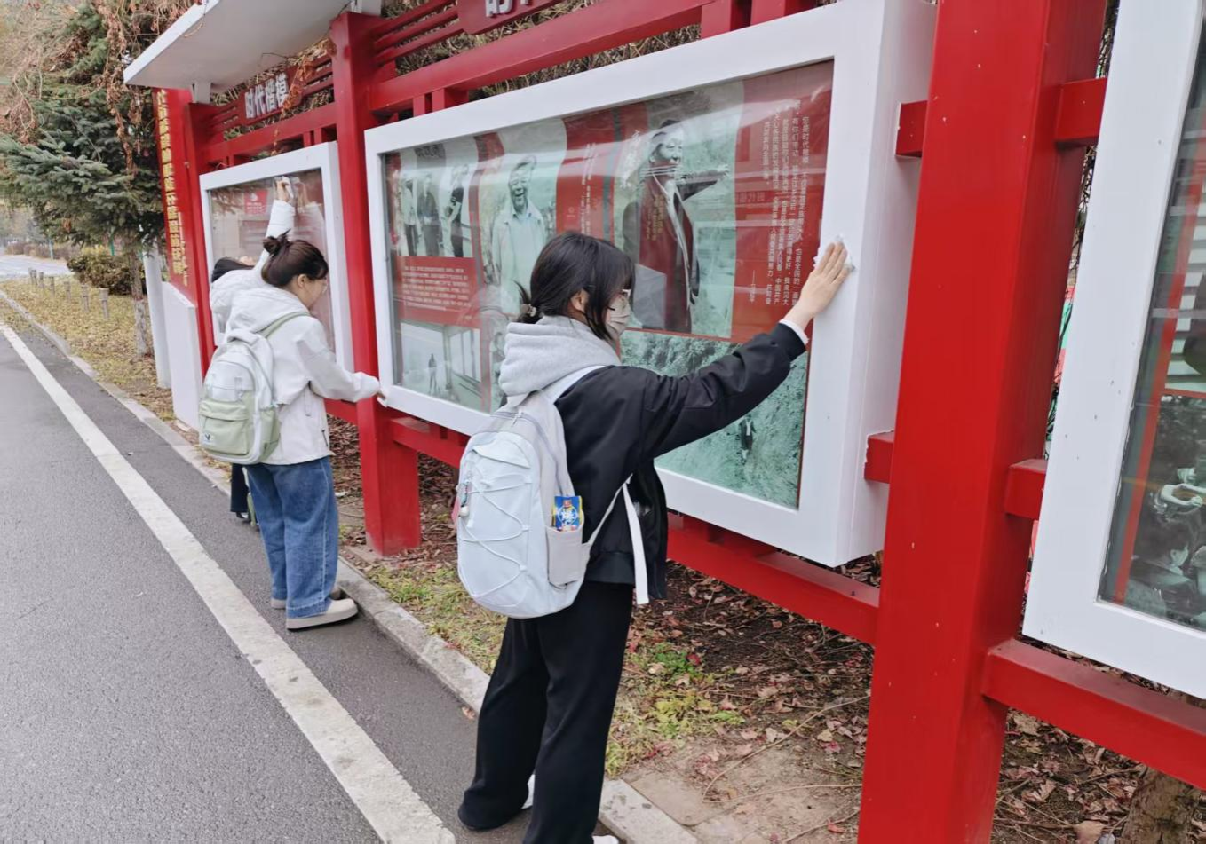 活动伊始,学员们携带工具,以小组为单位分工协作,仔细清除宣传栏表面的灰尘与浮垢,擦拭顽固污渍,对边框缝隙等卫生死角逐一清理,使校内文化长廊焕然一新。活动过程中,学员们以实际行动践行了“奉献、友爱、互助、进步”的志愿者精神,展现了新时代青年的责任与担当,为营造文明和谐的校园氛围注入了青春力量。