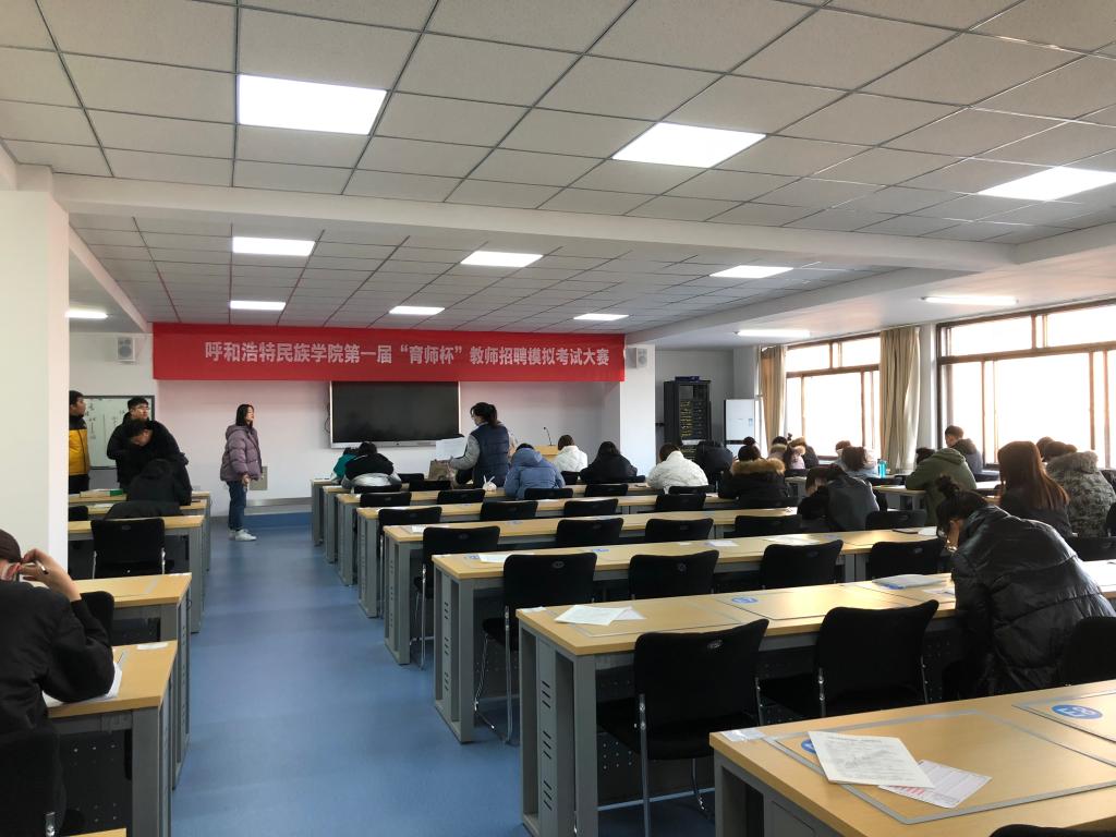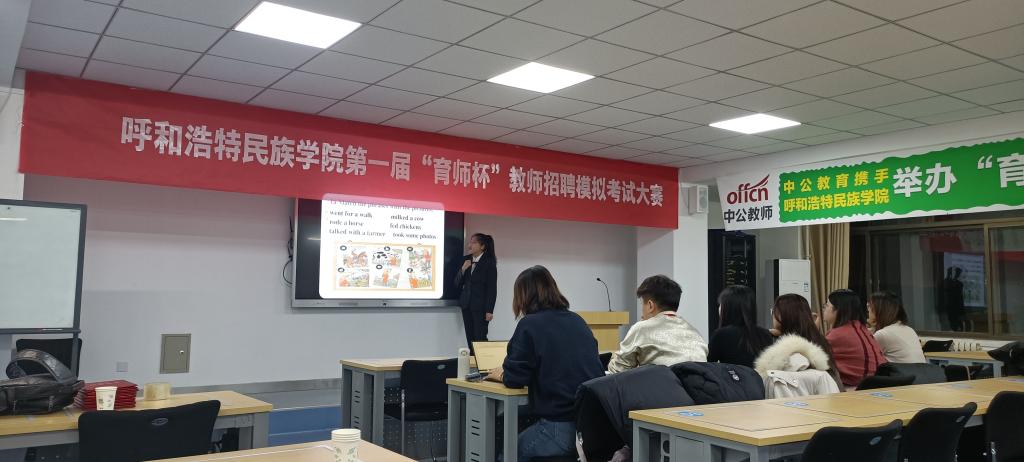 本次模拟考试大赛共设有两个环节:笔试、面试。笔试内容包括教育学、教育心理学、教育技术学,试卷设有蒙语卷和汉语卷。经过笔试环节,共有9名同学成功进入面试环节。决赛严格按照特岗教师招聘要求采取试讲的形式进行。选手们结合PPT和板书来进行课堂模拟,教学内容结合专业和未来教学层次、方向选定。在比赛过程中,选手们通过各种形式对所选题目进行讲解。现场评委就选手们对试讲内容的讲解和表现进行现场点评,并提出改进意见。整场比赛竞争激烈,同学们受益匪浅。最终,文学院张婉婷获得一等奖、文学院张小西获得二等奖、外国语学院牛倩获得三等奖,文学院王萨日娜、外国语学院李雪纯、文学院赵梦倩、文学院张田甜获得优秀奖。