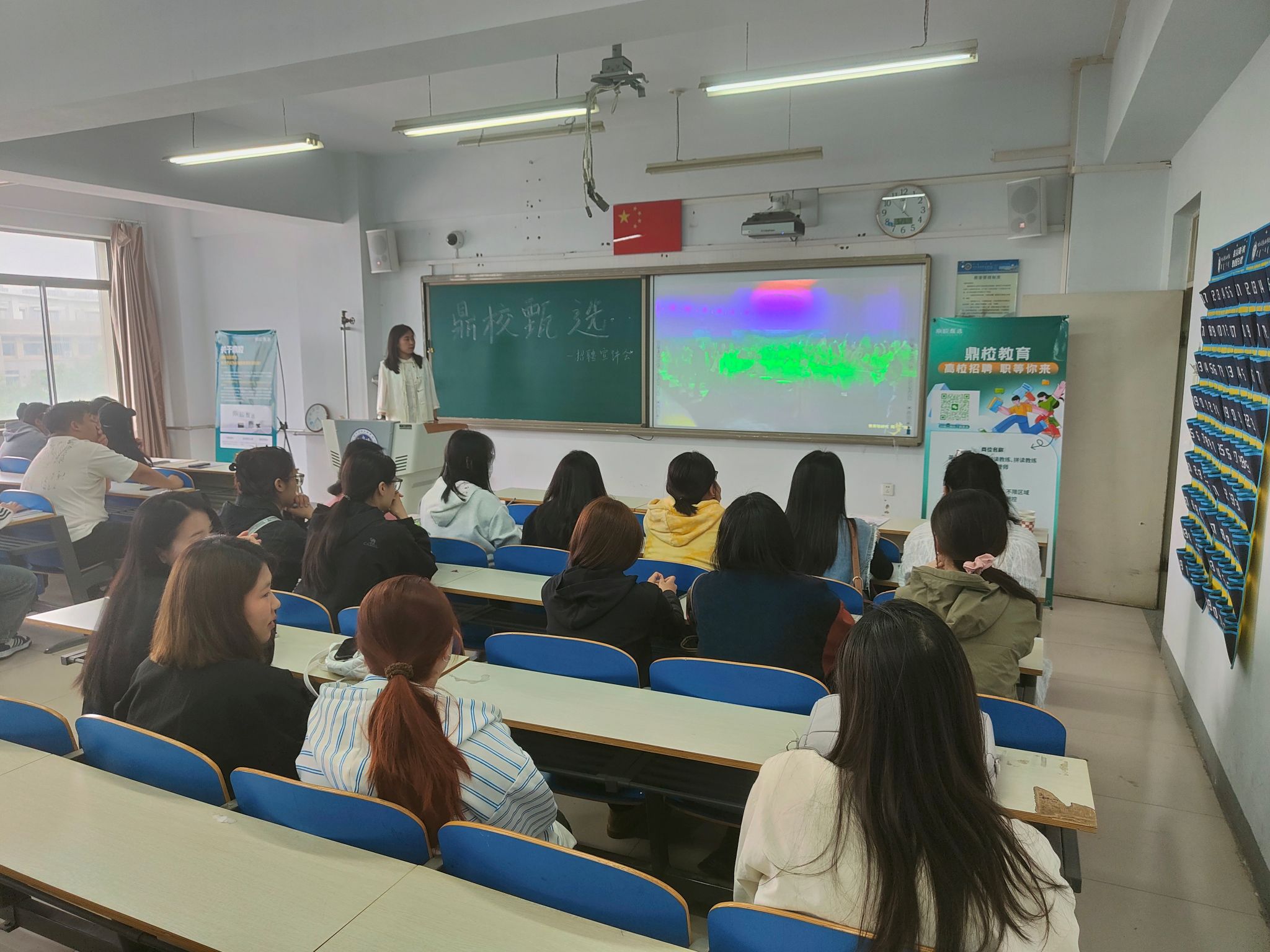 招聘会上,鼎校集团校招负责人廉佳荣详细介绍了鼎校集团目前承载的业务和岗位需求,诚邀英语听说读写能力强、致力于青少年外语能力素质教育的毕业生加盟该公司。交流互动环节,廉老师为米乐官网有就职意向的同学进行了问题解答。目前,有10余名学生准备竞聘该公司英语教练师职位。