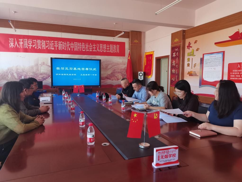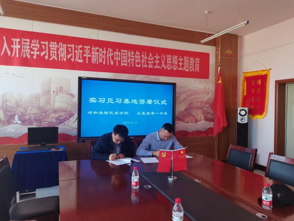 4月15日上午,外国语学院党总支书记朱俊杰、外国语学院副院长秦红喜、英语教研室主任乌优、党政办负责人春梅一行四人赴锡林郭勒盟正蓝旗第一中学举行“实习见习基地”签约授牌仪式。正蓝旗第一中学校长斯日古楞、副校长阿拉腾花、副校长乌宁其、副校长孟根胡雅嘎、英语组组长苏龙高娃院出席参加了仪式。