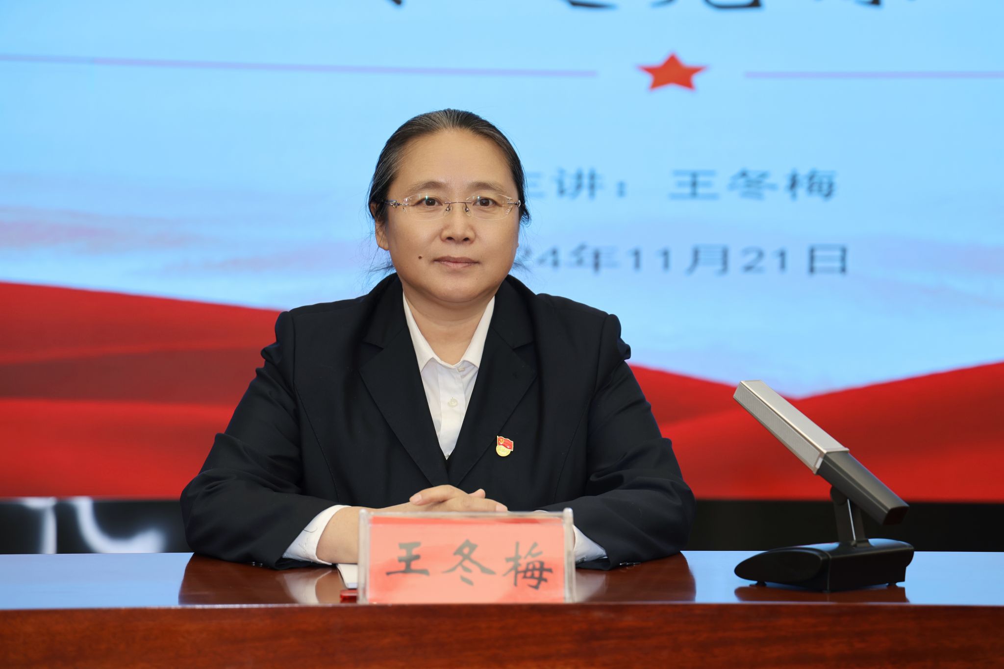 王冬梅以《深入学习贯彻党的二十届三中全会精神 书写中国式现代化内蒙古新篇章》为题,从深入学习领会习近平总书记在党的二十届三中全会上的重要讲话精神、全面准确理解《决定》提出的进一步全面深化改革重大举措、深入贯彻落实自治区党委十一届八次全会精神,书写中国式现代化内蒙古新篇章方面进行深入解读,并就如何在深入学习、深刻领会习近平总书记在全会上的重要讲话,全面贯彻习近平总书记对内蒙古的重要指示精神和铸牢中华民族共同体意识工作主线,牢固树立国家安全观,强化纪律建设,改进工作作风,正确使用公权力,抓好各项任务落实,锐意进取、真抓实干,为书写中国式现代化内蒙古新篇章,切实起到七个模范作用方面做了重点强调。