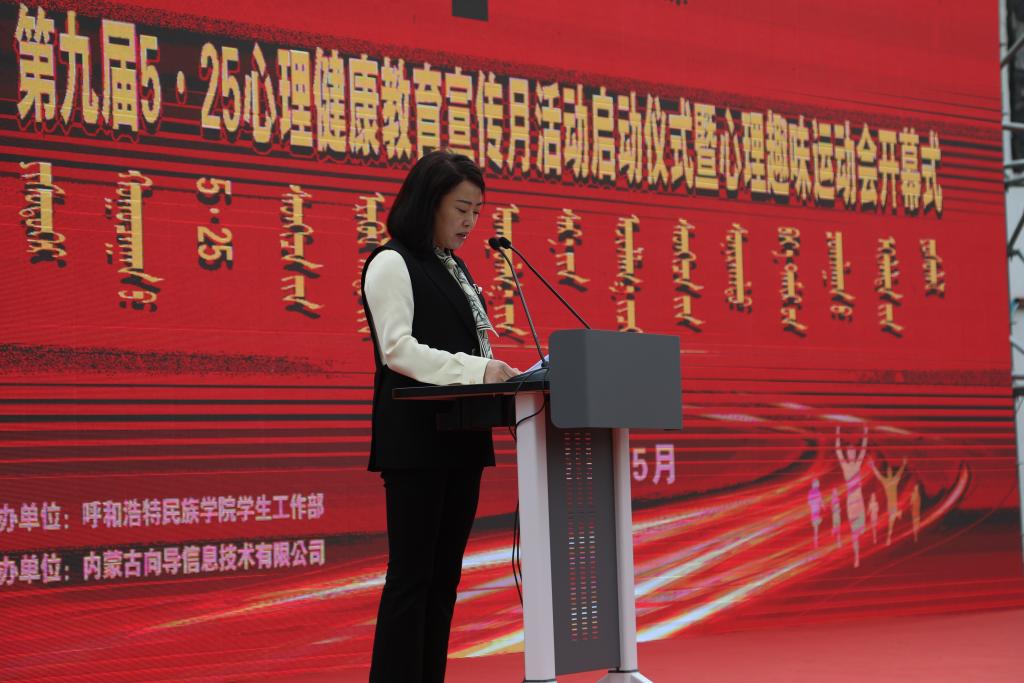 党委学生工作部部长海霞主持活动并宣读了第九届“5·25”心理健康教育宣传月活动方案。纳丽娜副校长与学院党总支书记代表共同开启启动球,宣告本届心理健康教育宣传月活动正式拉开帷幕。随后,纳丽娜副校长代表学校致辞,她指出加强和改进心理健康教育工作是新形势下促进大学生健康成长、培养高素质合格人才的重要途径,也是米乐官网立德树人、和谐发展的重要内容。要求广大师生要提高政治站位,深刻认识加强大学生心理健康教育工作的重要性、紧迫性和长期性;要探索大学生心理发展的特点和规律,坚持育心育德相结合,不断提高工作的科学性、针对性和实效性;要强化组织领导,积极开展丰富多彩的心理健康教育活动,引导学生健康成长成才。并预祝本届心理健康宣传月各项活动取得圆满成功。