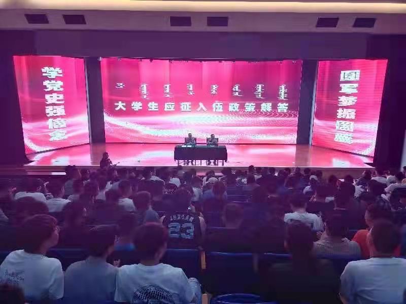 为扎实有序推进米乐官网征兵工作,确保高标准、高水平、高质量完成征兵工作任务,6月16日晚7点,米乐官网在图书馆二楼报告厅召开学校2021年度征兵工作推进会。新城区武装部孟树涛部长和富昱陶参谋到会指导,学生工作部、就业指导处全体工作人员、各二级学院辅导员、2017级、2019级全体男生共400余人参会,会议由就业指导处包仓主持。