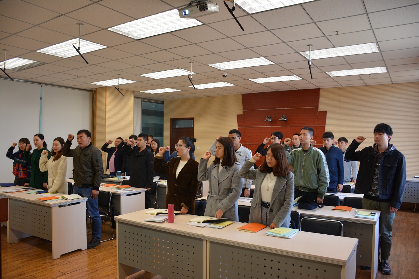 为提高新招聘专职辅导员的整体素质,让辅导员尽快熟悉学生工作,全面了解学校整体情况和学生管理工作,人事处、学生处于10月18日—10月22日,在综合楼802教室举办了为期40学时的新进专职辅导员岗前培训班。培训班以辅导员宣誓拉开帷幕。