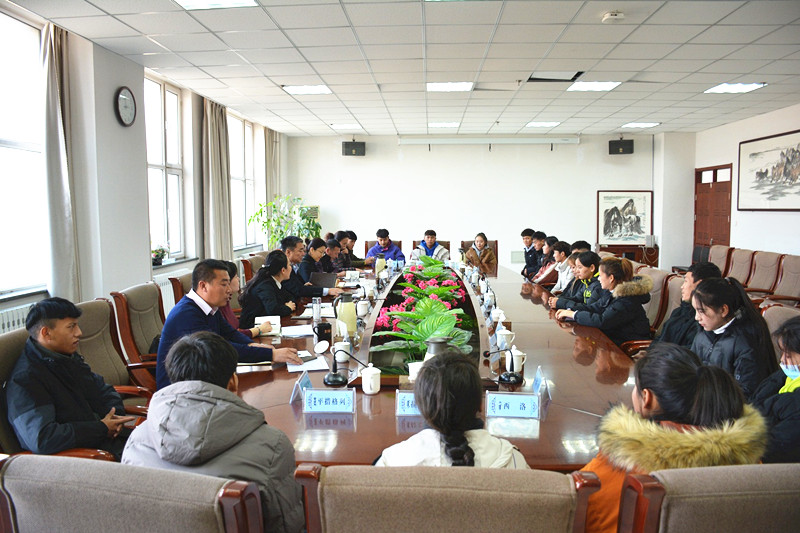 12月14日下午15时在综合楼11楼会议室召开藏族学生座谈会。校长格日乐图、副校长纳丽娜以及团委、学生工作处、就业指导中心相关人员、19名藏族同学参加座谈会。座谈会由学生工作处杨福梅处长主持。